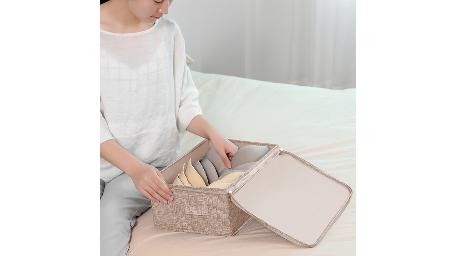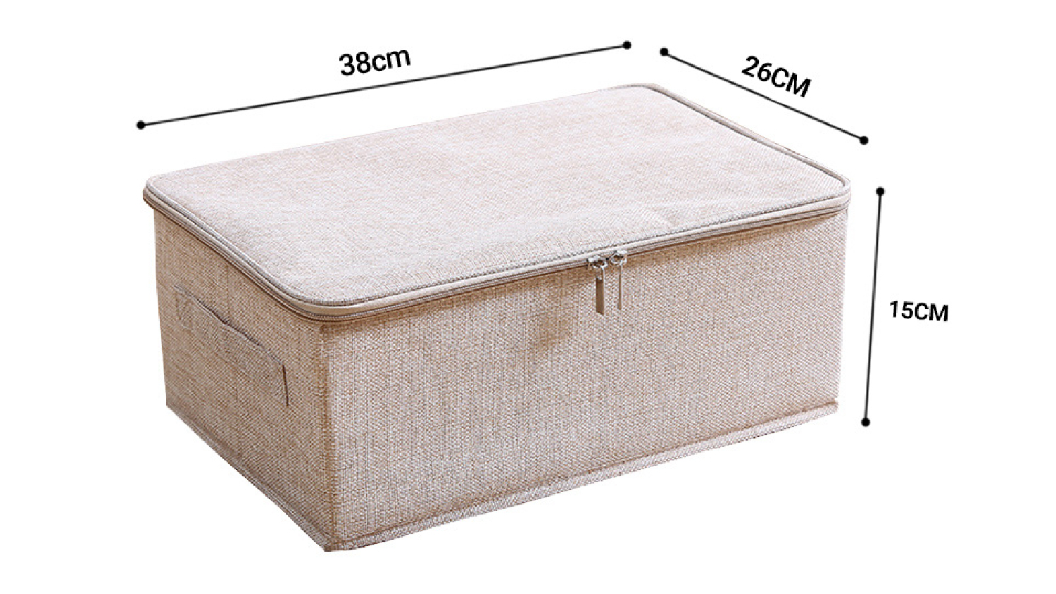 SOGA Small Dual Zipper Fabric Storage Box - Beige