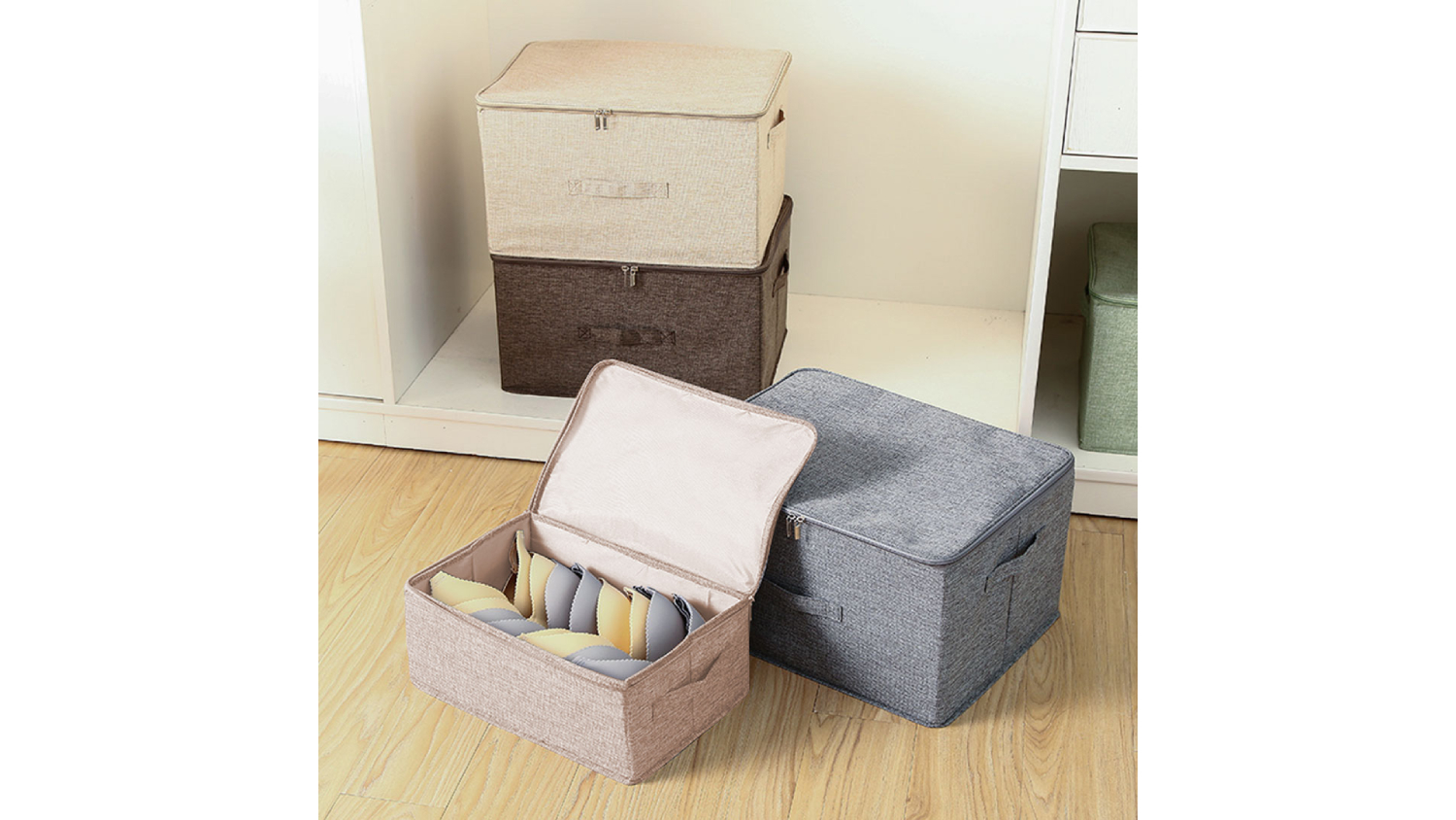 The SOGA Small Dual Zipper Fabric Storage Box is a great way to keep your home organised and clutter-free. Boasting premium fabric and thickened cardboard construction along with rivets reinforcement, this storage solution ensures impressive durability. The foldable design also allows for easy storage after each use. Whether you need to store books, clothes, or office supplies, this storage box is the perfect choice.