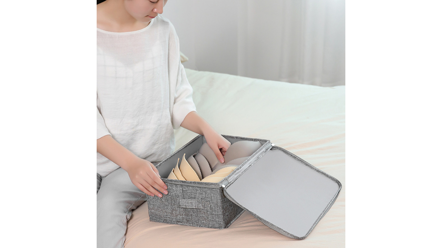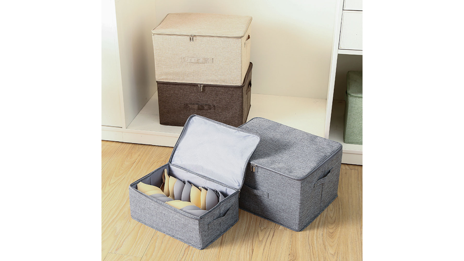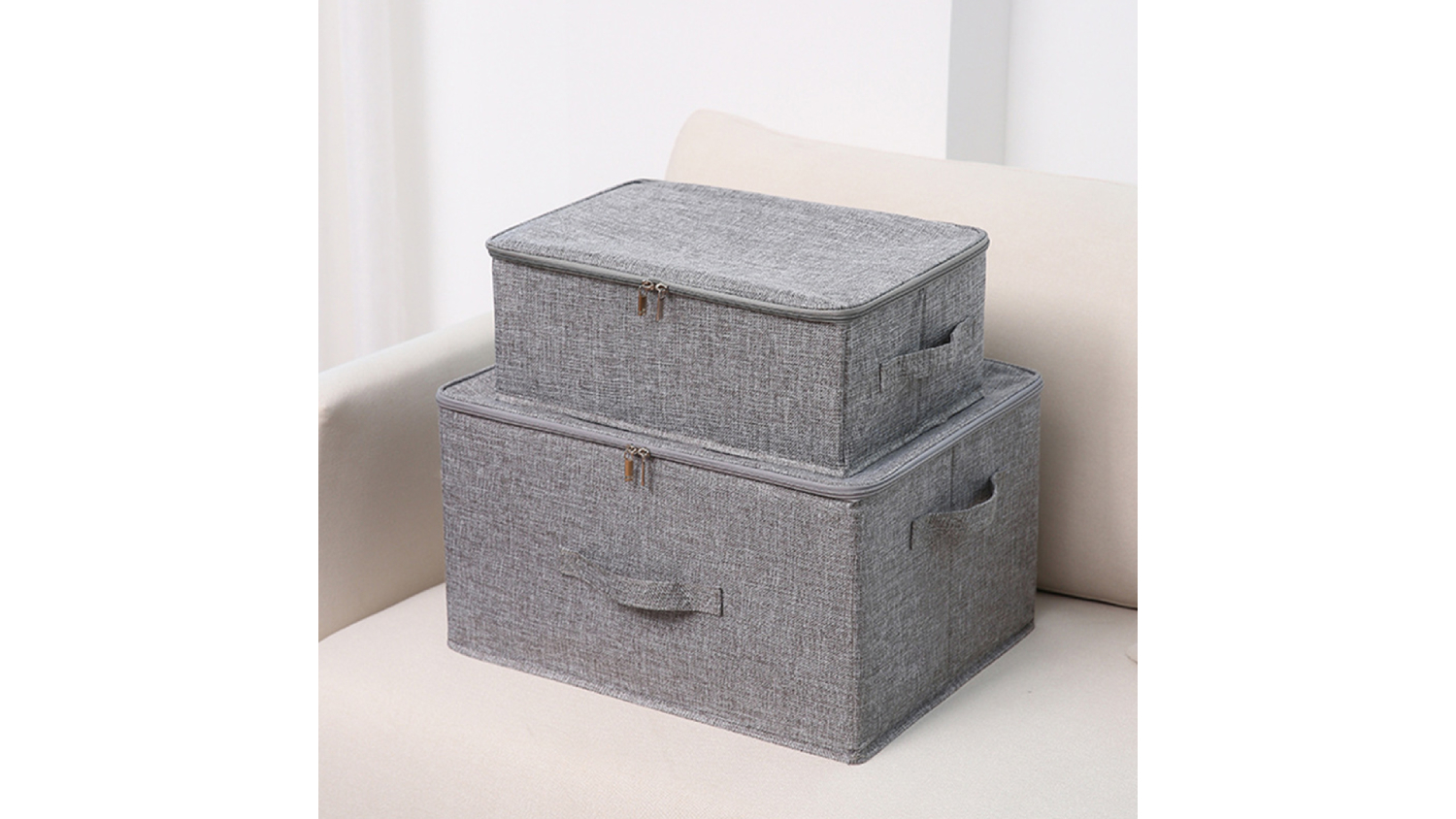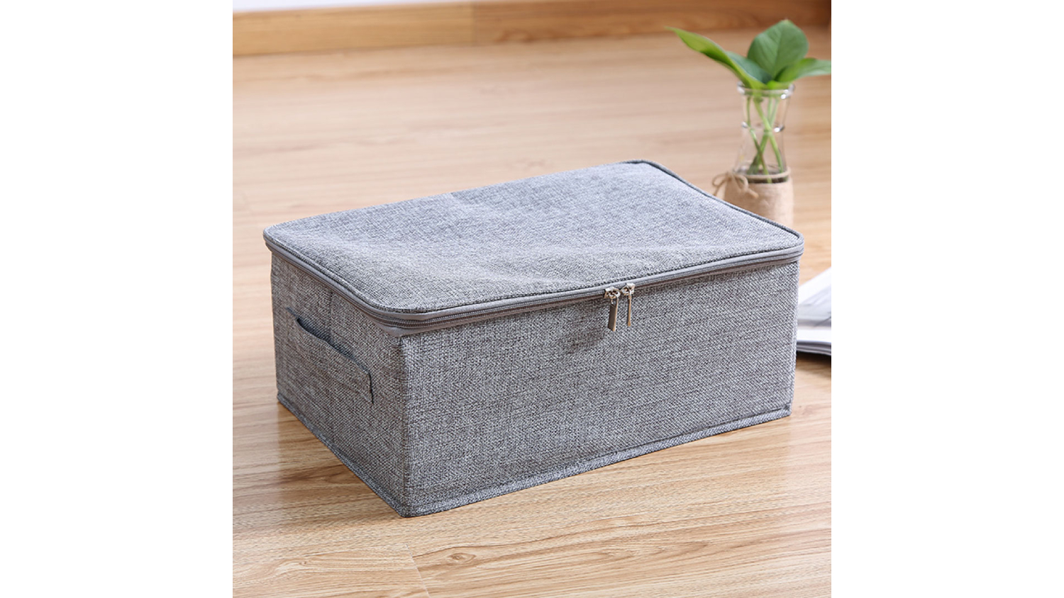 SOGA Small Dual Zipper Fabric Storage Box - Grey