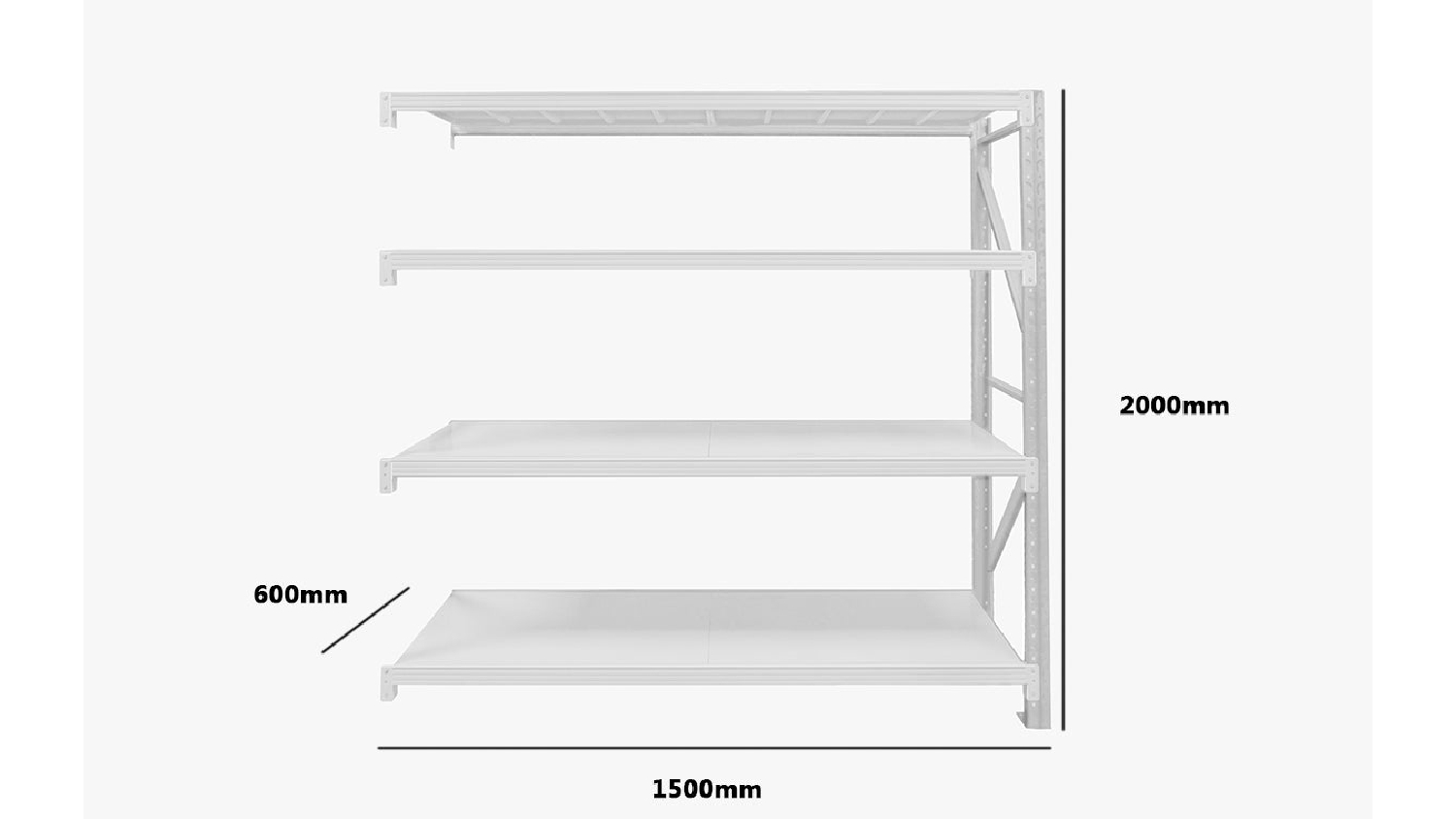 TSB Living 4-Tier Longspan Add-On Shelving Unit 1.5m - Grey-White