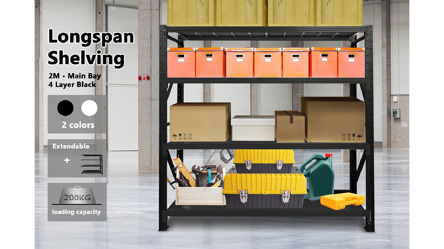 *TSB Living 4 Tier Longspan Shelving Unit 2m Black only. Other colours are sold separately.
