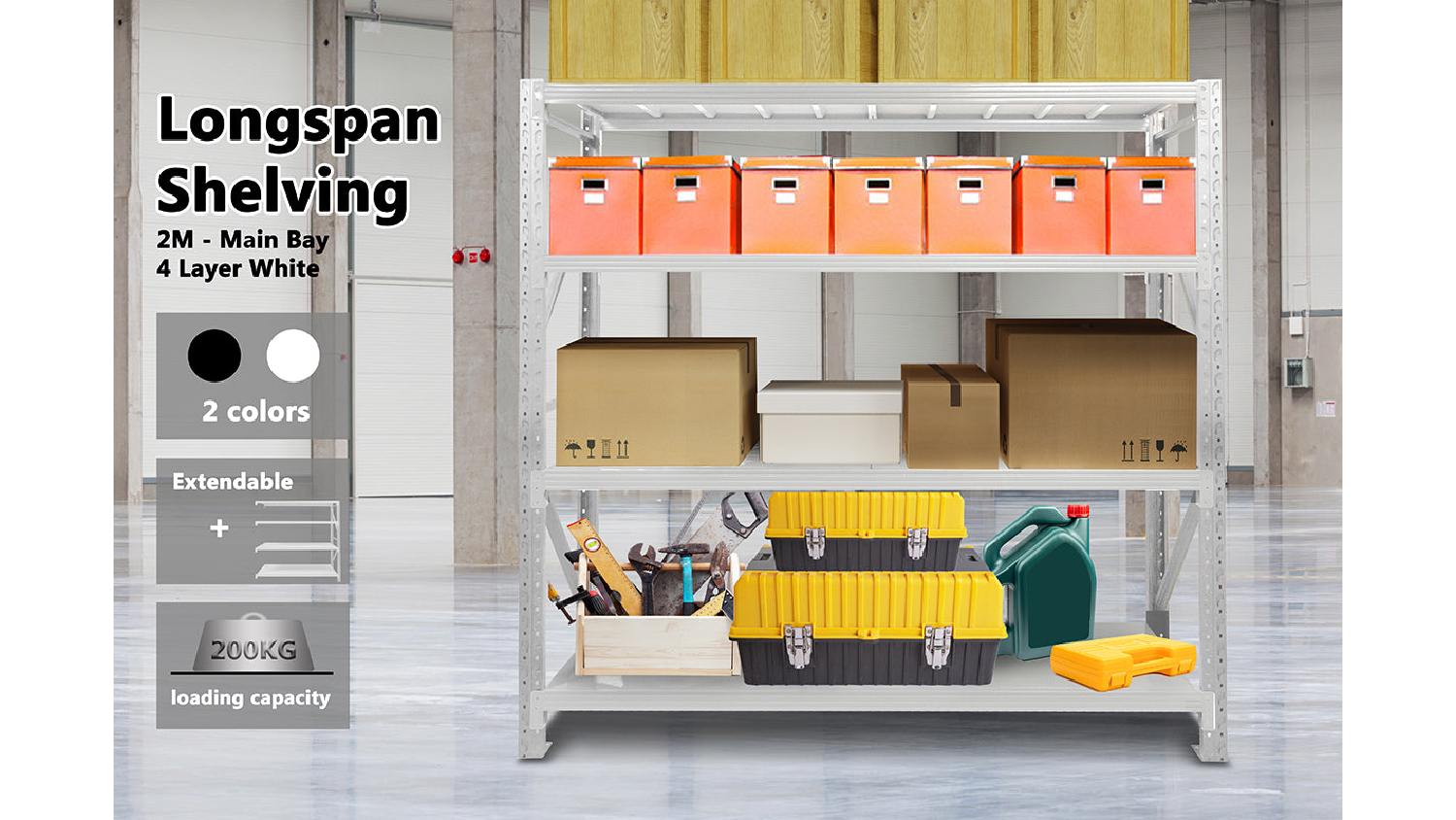 TSB Living 4-Tier Longspan Shelving Unit 2m - Grey-White