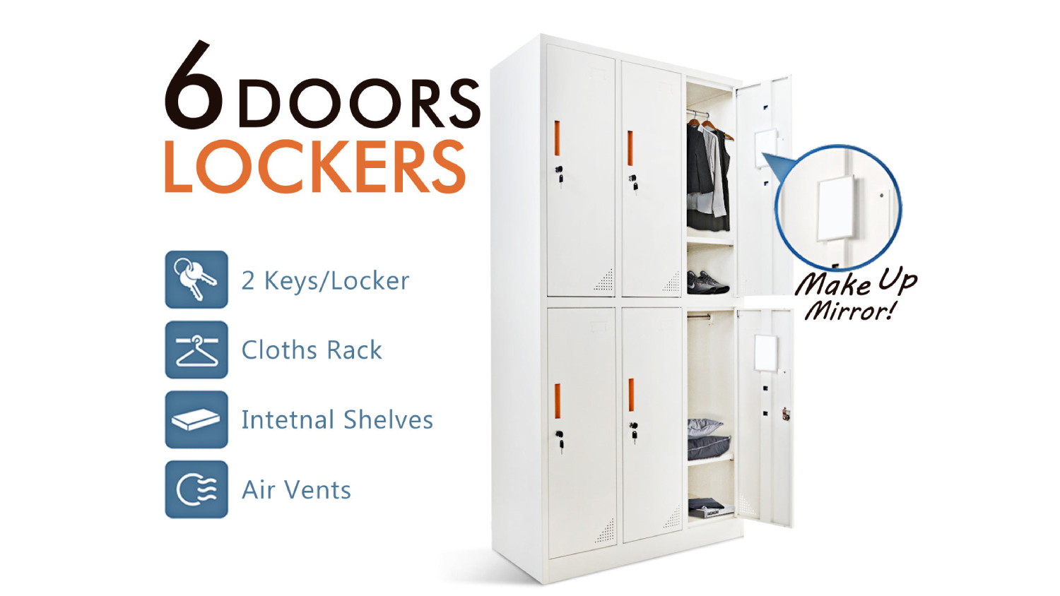Discover the ultimate storage solution with the TSB Living 6-Door Metal Locker Shelving Unit! This nifty storage solution includes 6 lockers with two unique keys each, identity label slots, and air vents for ventilation. Crafted from powder-coated steel with a sleek matte finish, it adds a modern touch to any space.