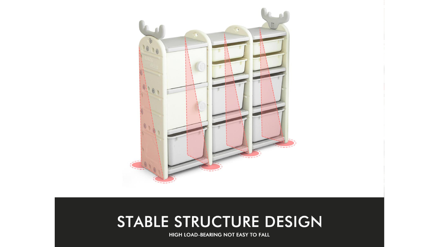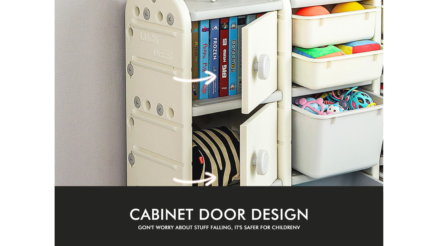 Say goodbye to clutter and hello to an organisation with the TSB Living Children's Toy Storage Shelf. From toys to books, this versatile storage solution offers a large space with classified storage, cabinet doors, and a stable structure design. Built with environmentally friendly materials and smooth rounded edges, it's the perfect choice for creating a tidy and safe playroom environment.