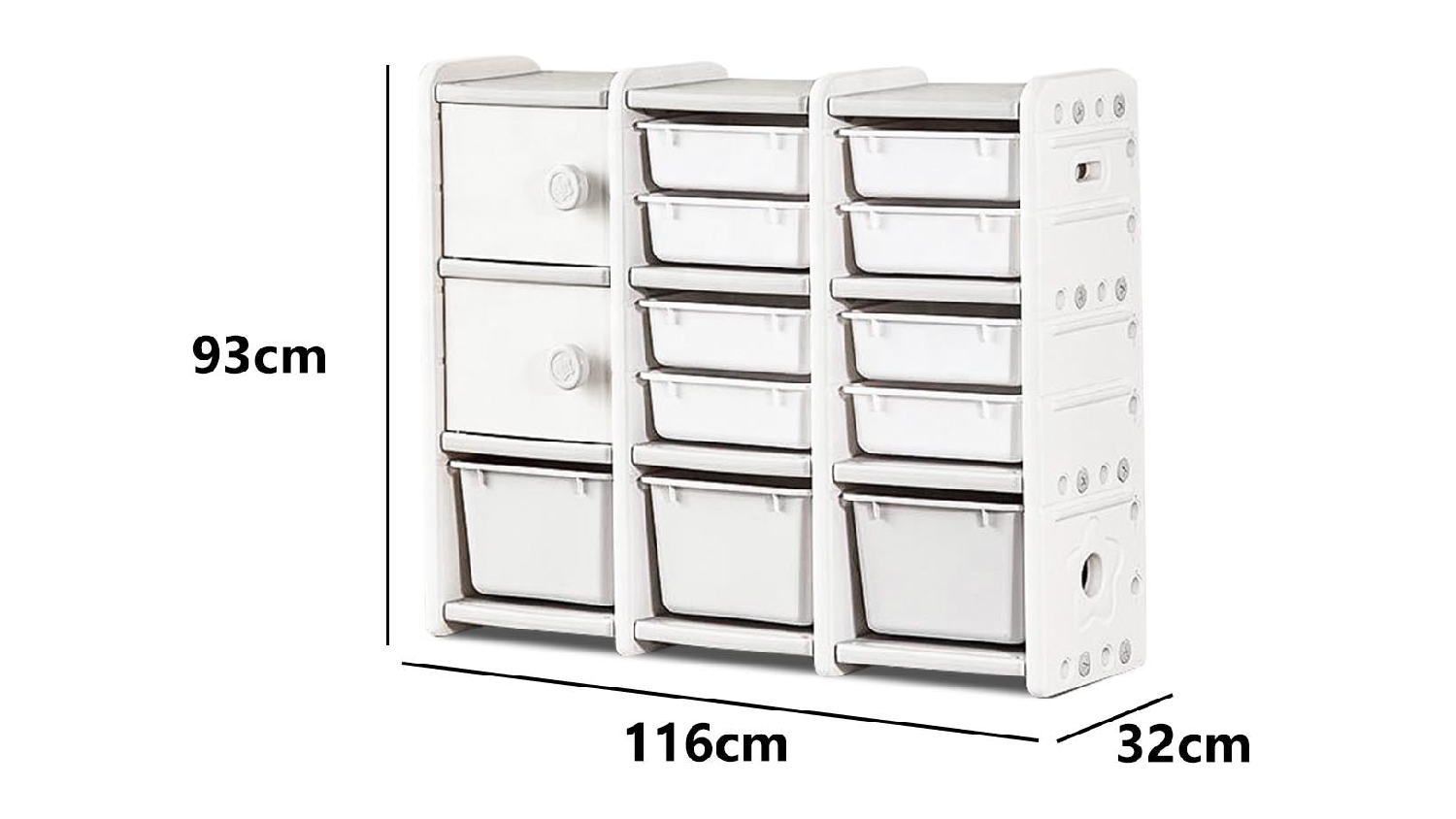 Say goodbye to clutter and hello to an organisation with the TSB Living Children's Toy Storage Shelf. From toys to books, this versatile storage solution offers a large space with classified storage, cabinet doors, and a stable structure design. Built with environmentally friendly materials and smooth rounded edges, it's the perfect choice for creating a tidy and safe playroom environment.