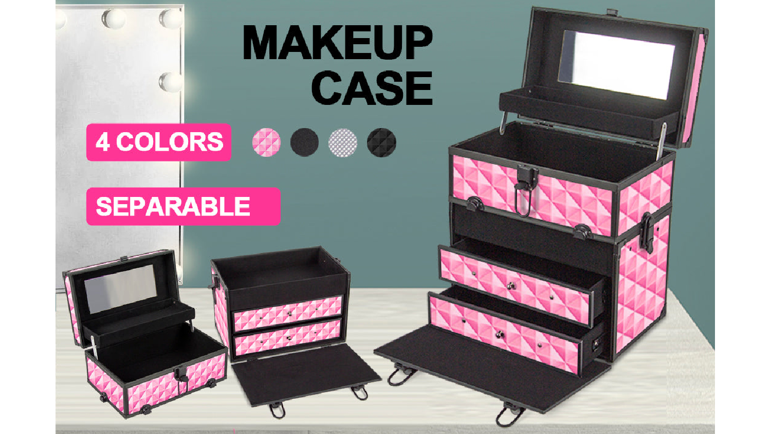 *TSB Living Portable Makeup Case with Drawers and Handle Pink only. Other colours/patterns are sold separately.