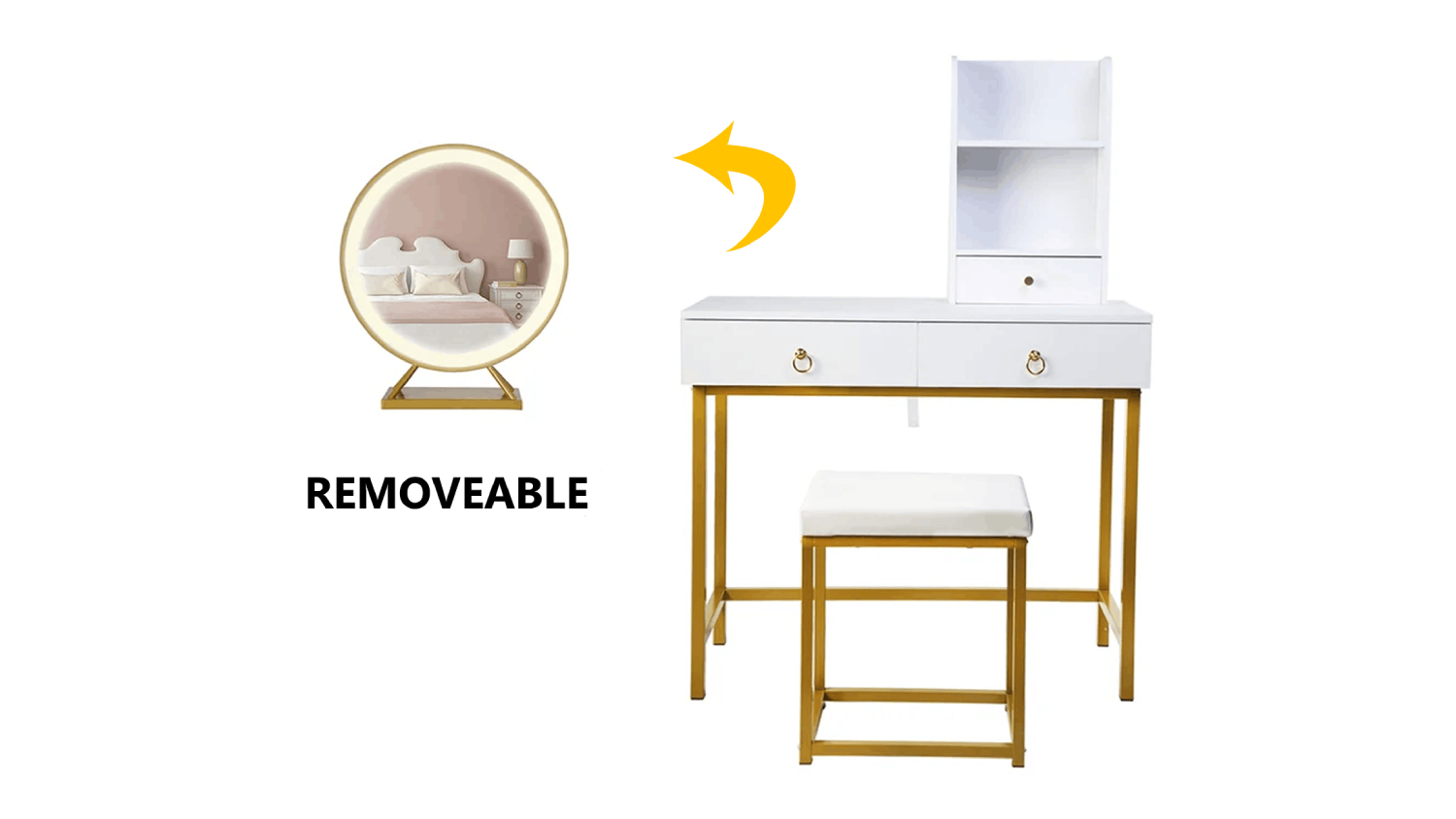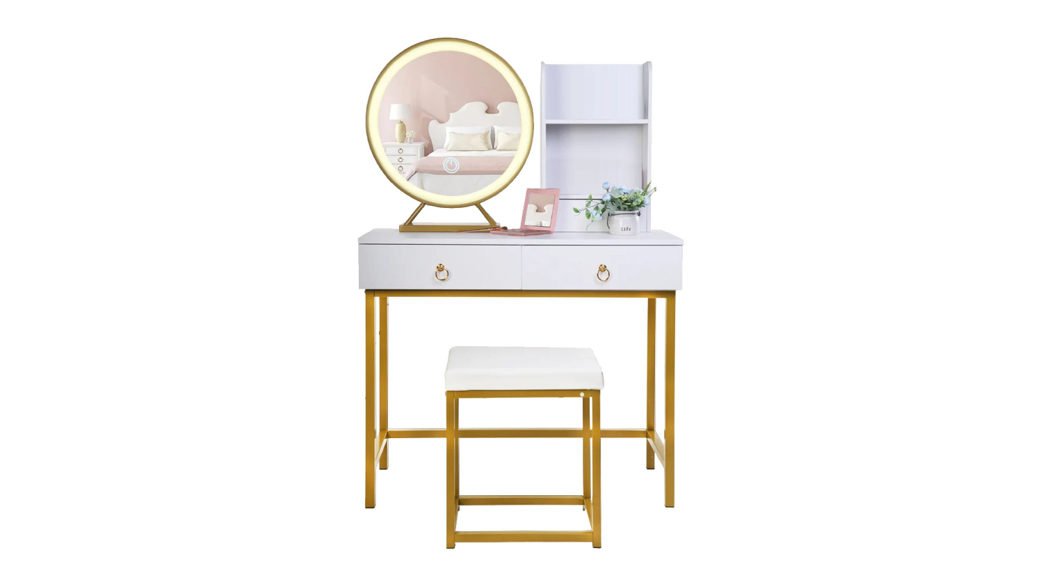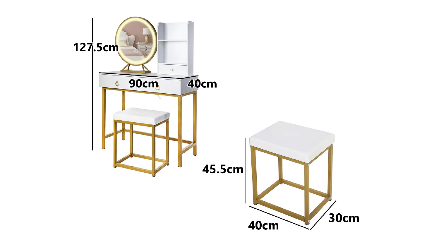 Enhance your daily beauty ritual with the TSB Living Uskey Vanity Set with Shelf, a stylish and functional addition to any bedroom, bathroom, or hallway. Its sleek design and ample storage space make it the perfect companion for organising your makeup, jewellery, and accessories.