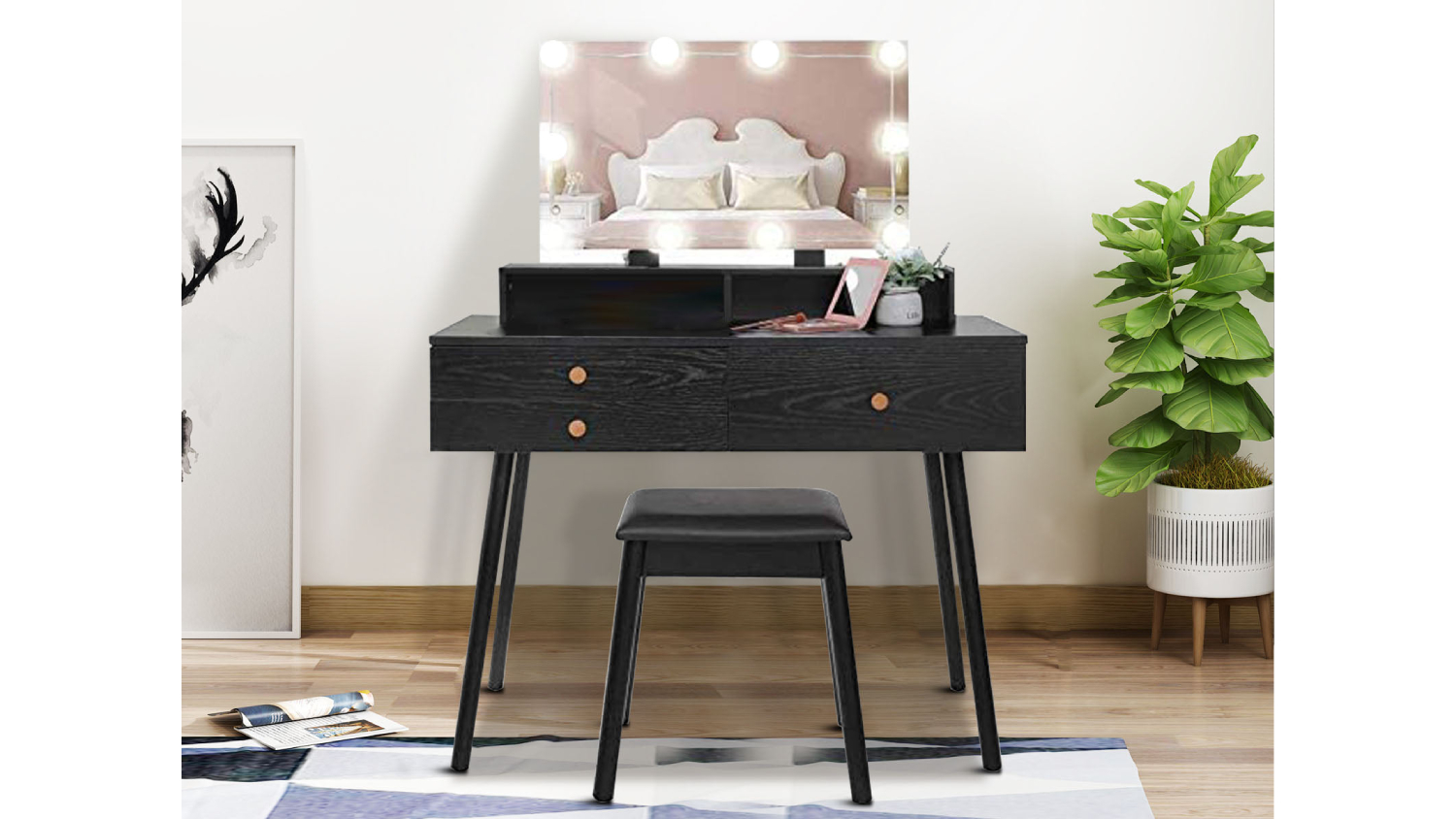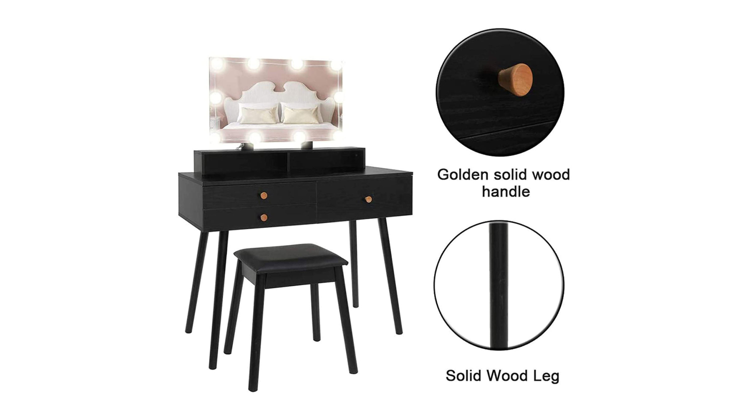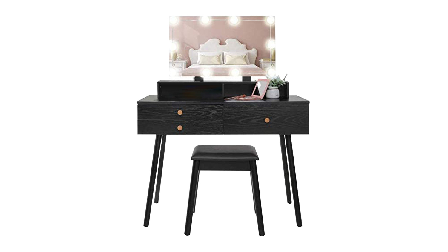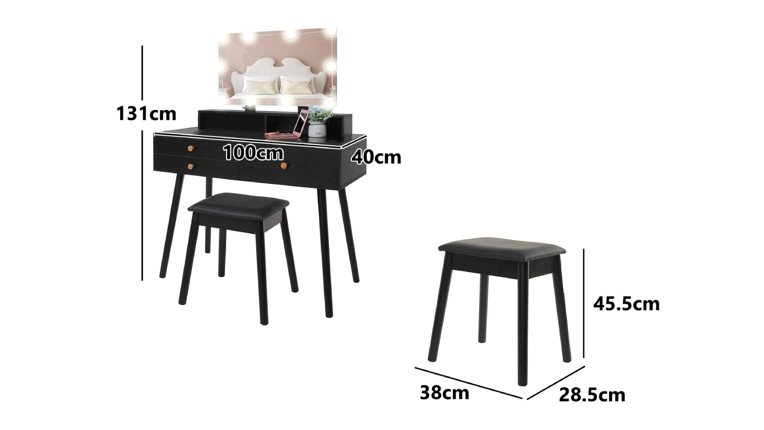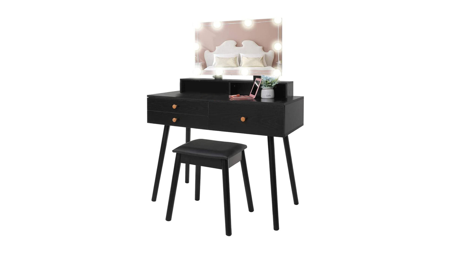 Experience luxury in your daily routine with the TSB Living Uskey Vanity Set! This simple yet fashionable dressing table exudes warmth and charm, featuring a large mirror with 10 LED lights for a crisp and clear view. With ample storage including 3 drawers and a storage shelf, this chic makeup table seamlessly combines beauty and functionality.