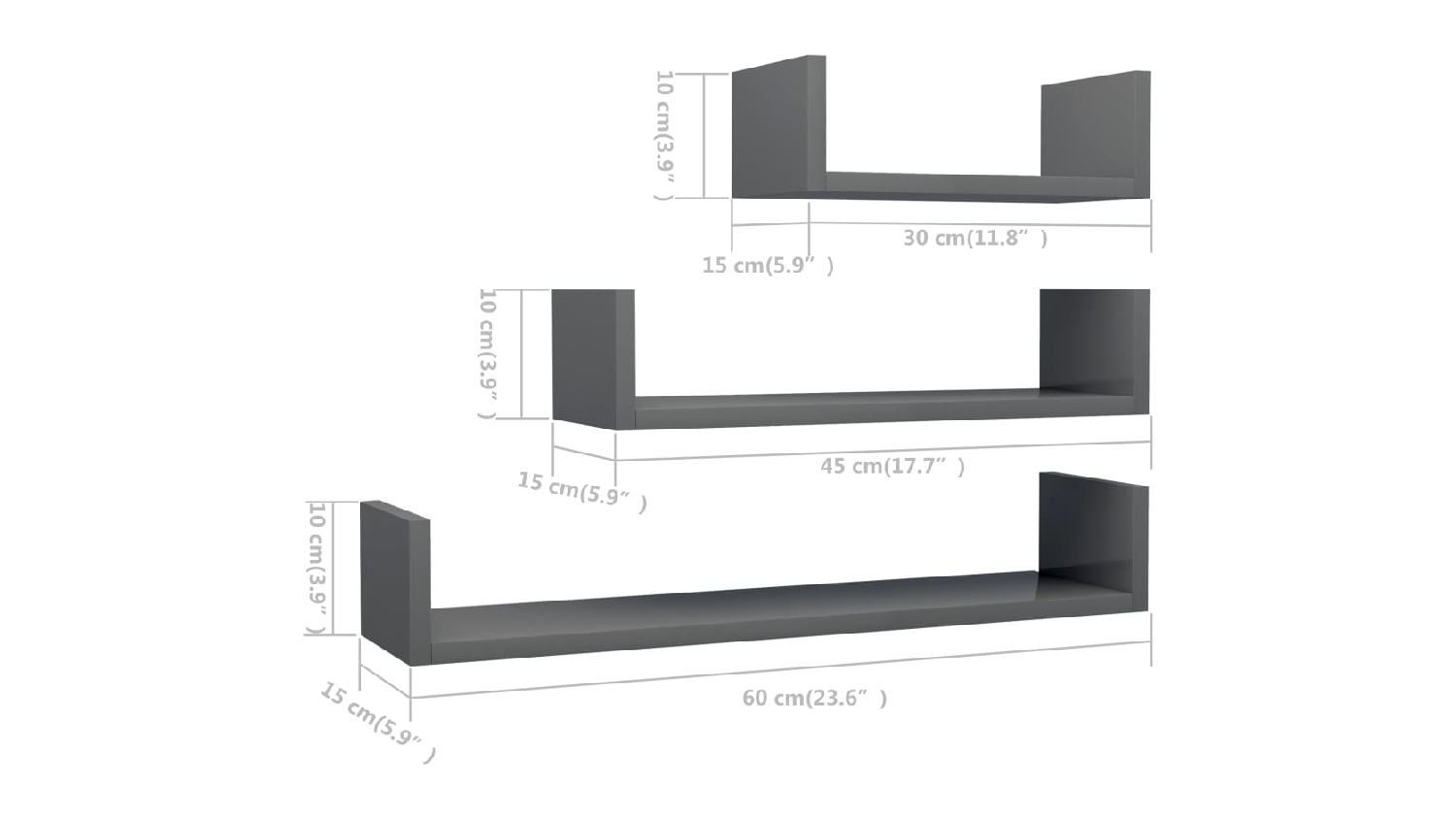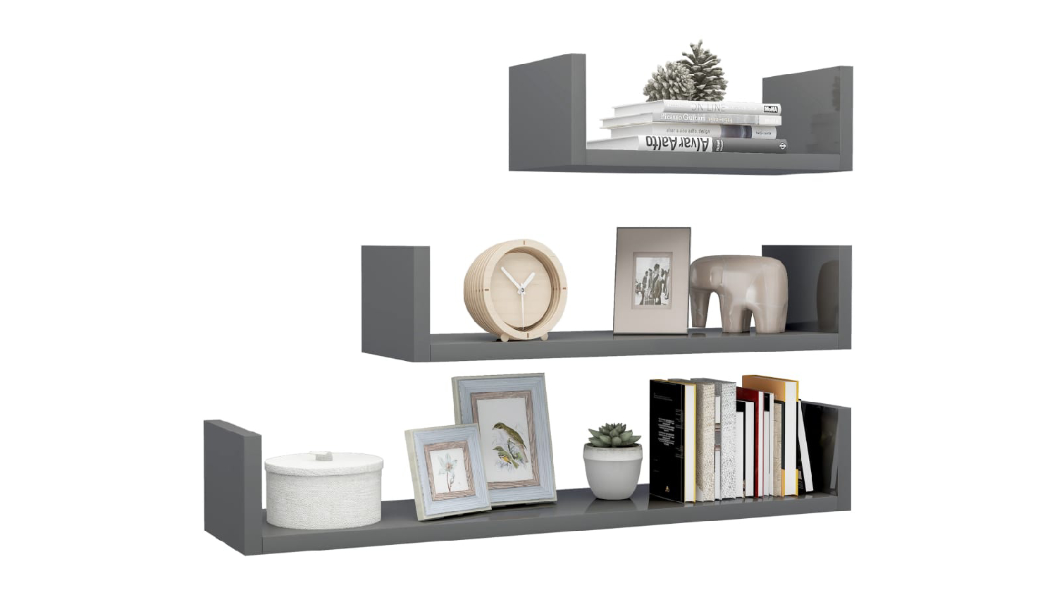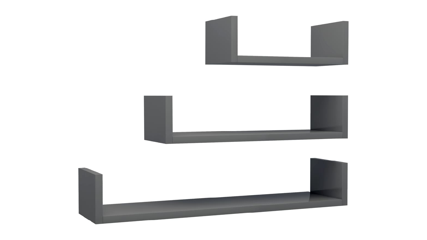 NNEVL U-Shape Floating Wall Shelves 3pcs - Gloss Grey