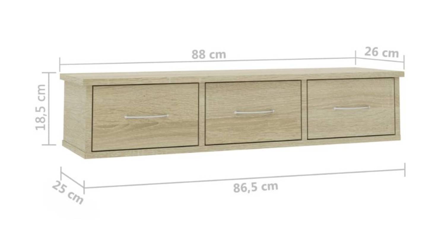 NNEVL Wall Mountable Shelf Drawer 88 x 26 x 18.5cm - Sonoma Oak