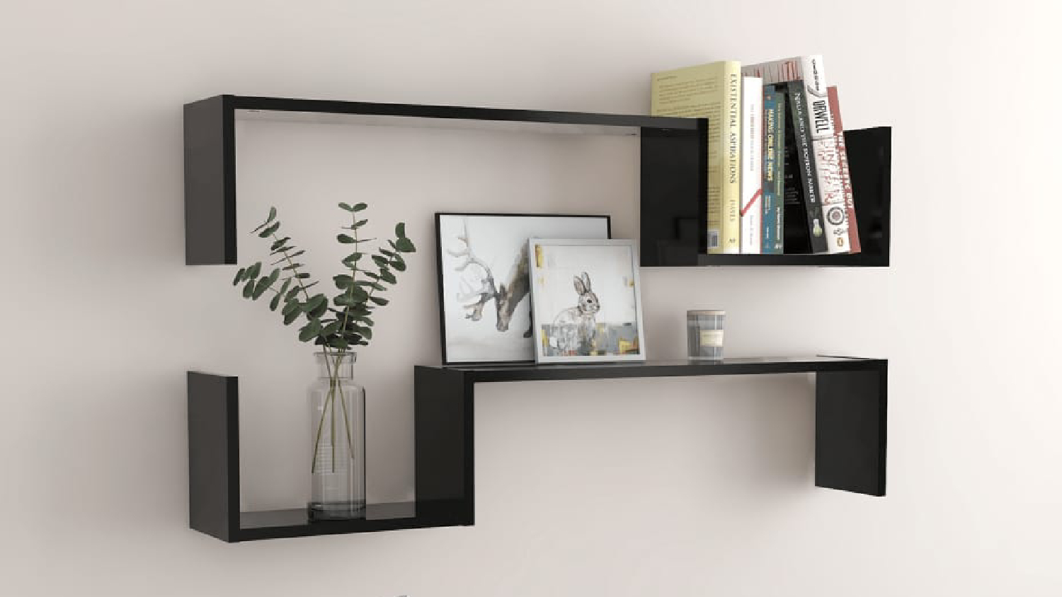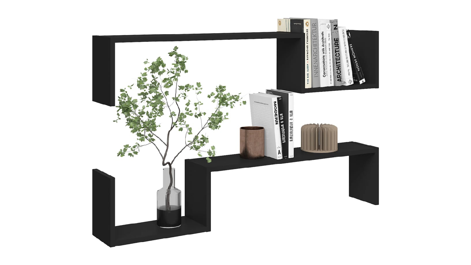 NNEVL Wall Shelves S-Shape Floating 100 x 15 x 20cm 2pcs. - Black