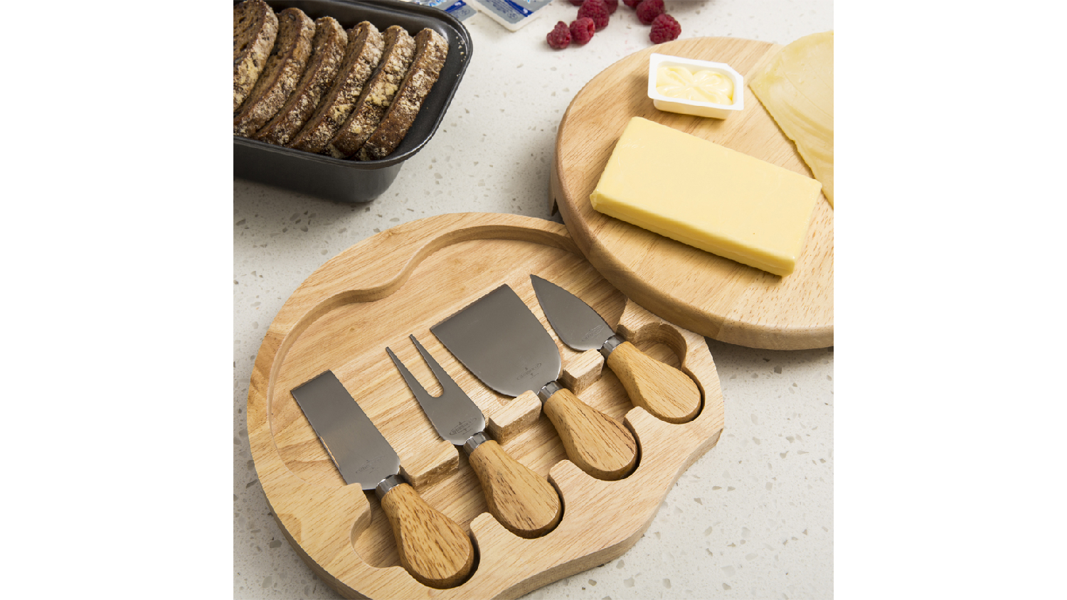Elevate your dinner parties with Sherwood Wooden Cheese Board & Knife Set. This luxurious bundle makes the perfect present for any host or cheese lover, guaranteed to bring joy and countless gourmet cheese platters.