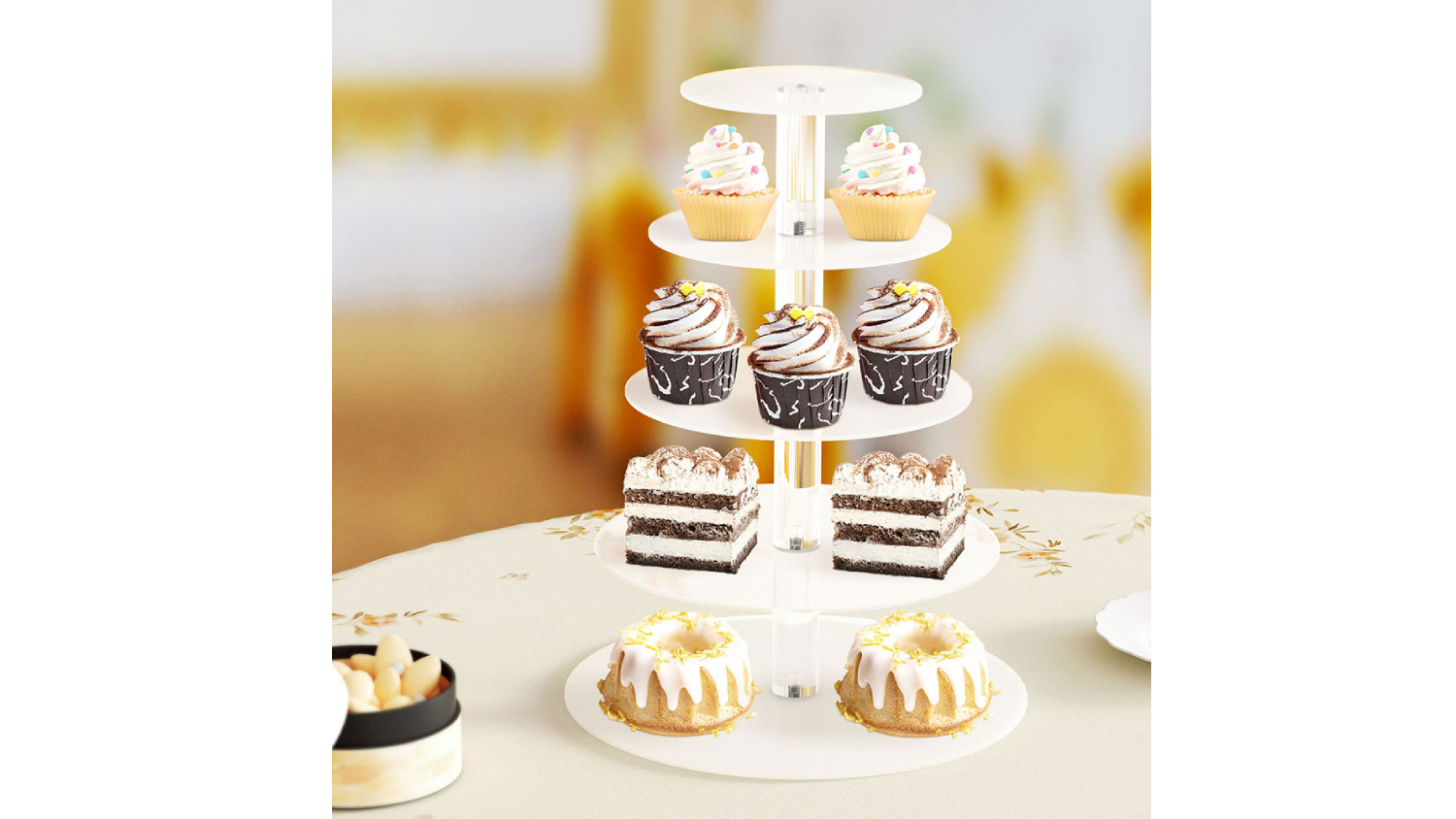5-Star Chef 5-Tier Acrylic Cake Display Stand - White