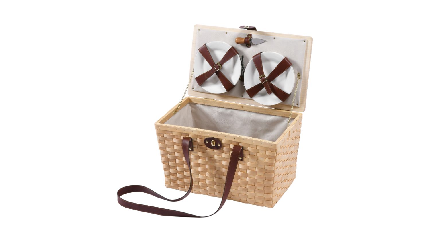 Elevate your picnics with the Vibes "Barossa" Picnic Basket Set, where style meets practicality for a truly exceptional outdoor dining experience! With enough space to accommodate four, each person gets their own set of silver-effect cutlery, ceramic plates, and real wine glasses. But it doesn't end there—this set is thoughtfully equipped with a cheese knife, bottle opener, and bamboo cutting board. Plus, the fabric and PU leather straps and fixtures ensure secure fastening and hassle-free carrying.