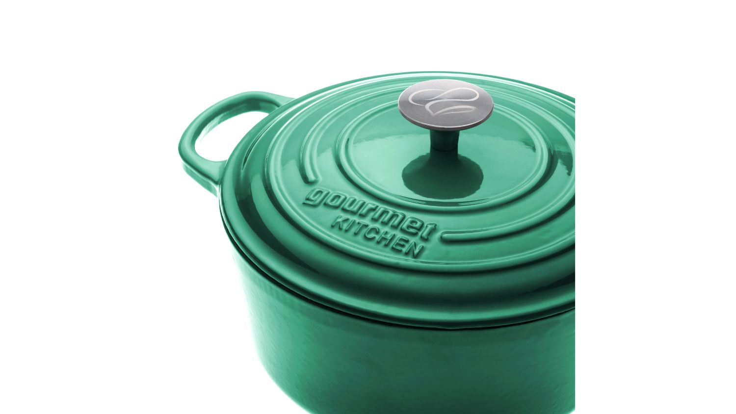 *Gourmet Kitchen Cast Iron Casserole Dish 24cm Eden Green only. Other variants are sold separately.