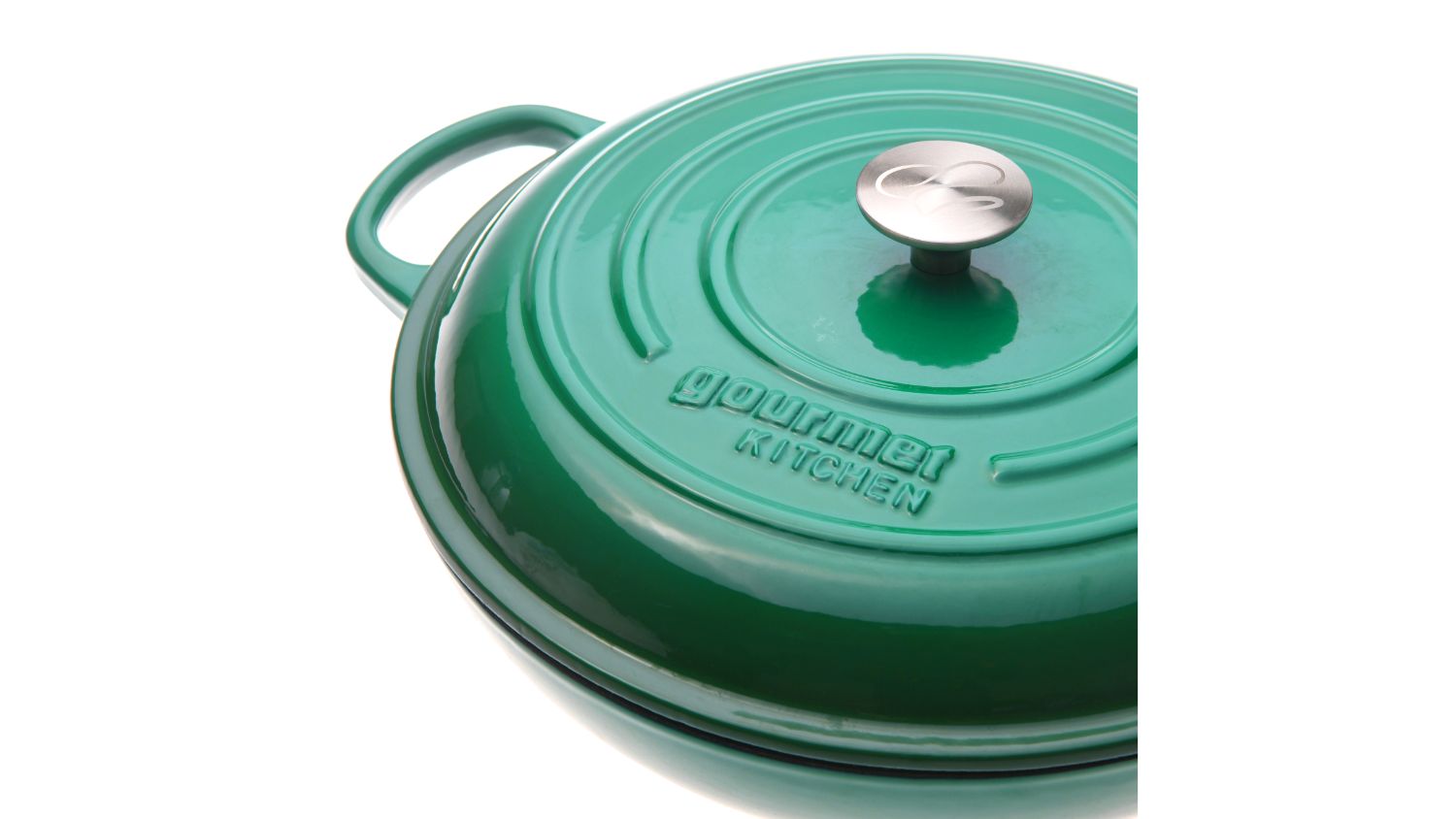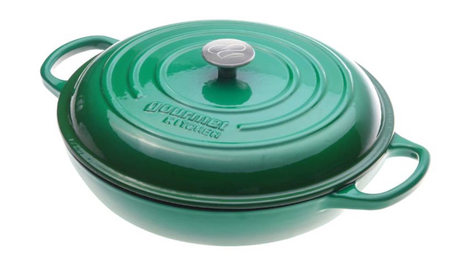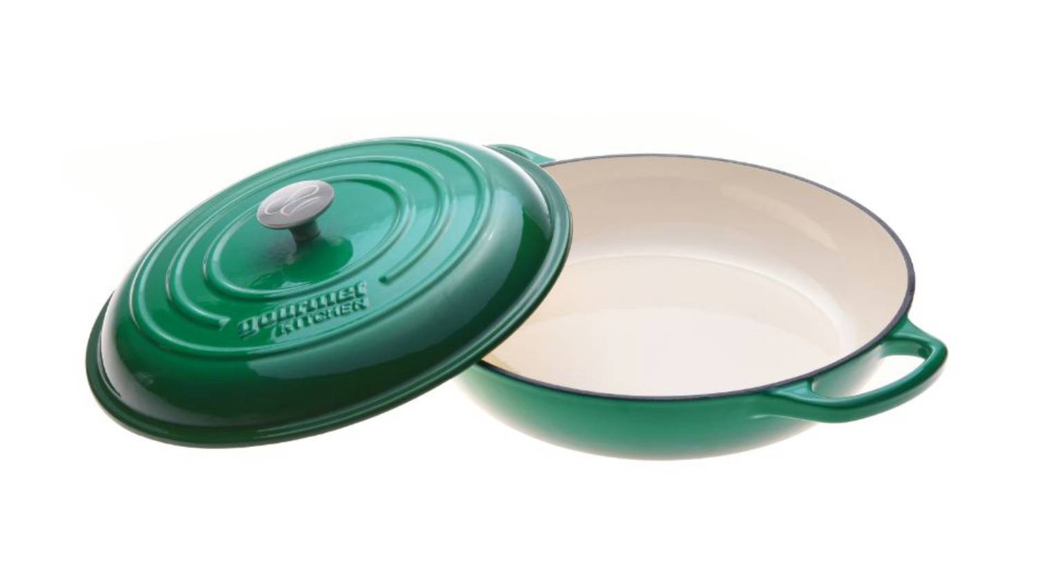 *Gourmet Kitchen Cast Iron Shallow Casserole Dish 30cm Eden Green only. Other variants are sold separately.