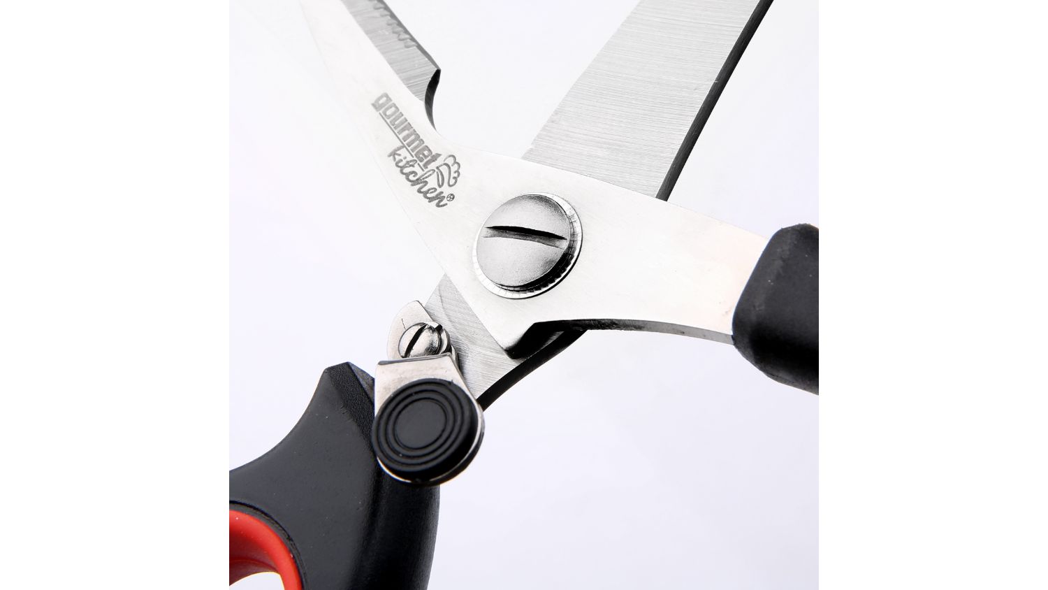 Unlock a new level of kitchen convenience and cut effortlessly with the Gourmet Kitchen Multi-Purpose Kitchen Scissors! It features a high-grade rivet, micro-serrated blade edge, and comfortable handles, taking the hard work out of your cutting tasks. It is also crafted from thick, corrosion-resistant stainless steel, so it is built to last.