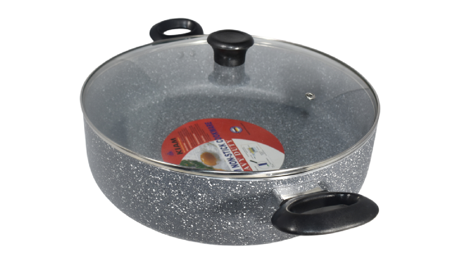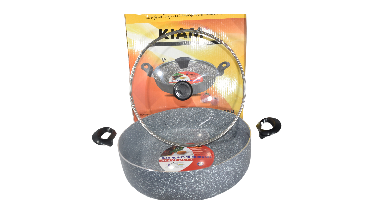Unlock culinary possibilities with the Kiam Heavy Duty Non-Stick High Wall Multi-pan with Glass Lid 26cm. Its durable, scratch-resistant and non-stick coating lets you use less oil for healthier dishes, while the firm grip handle makes cooking a breeze. Plus, the included glass lid lets you monitor your food at a glance. Lightweight and easy to clean, this pan is a must-have for any kitchen!