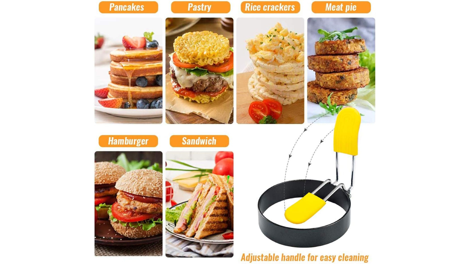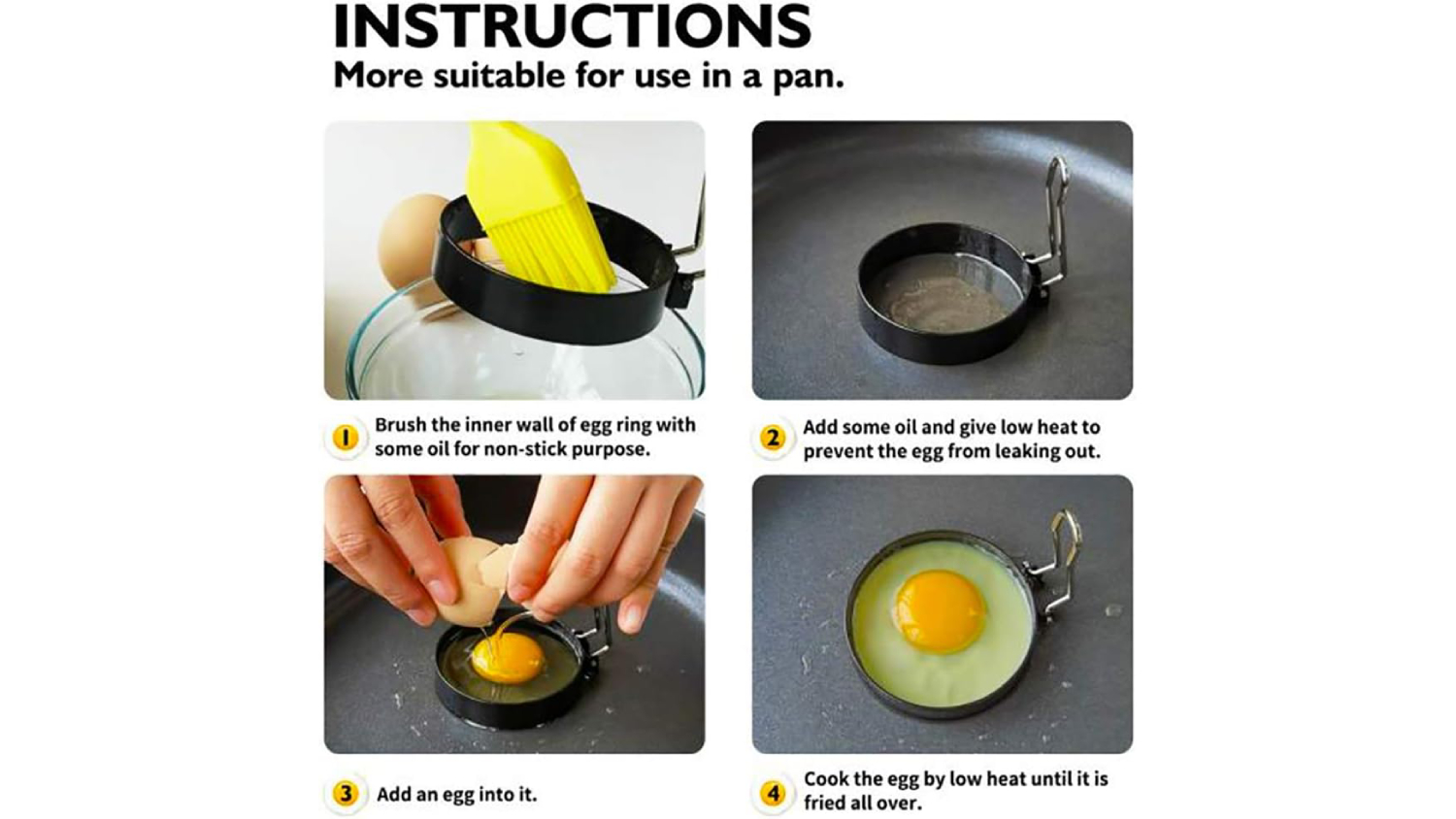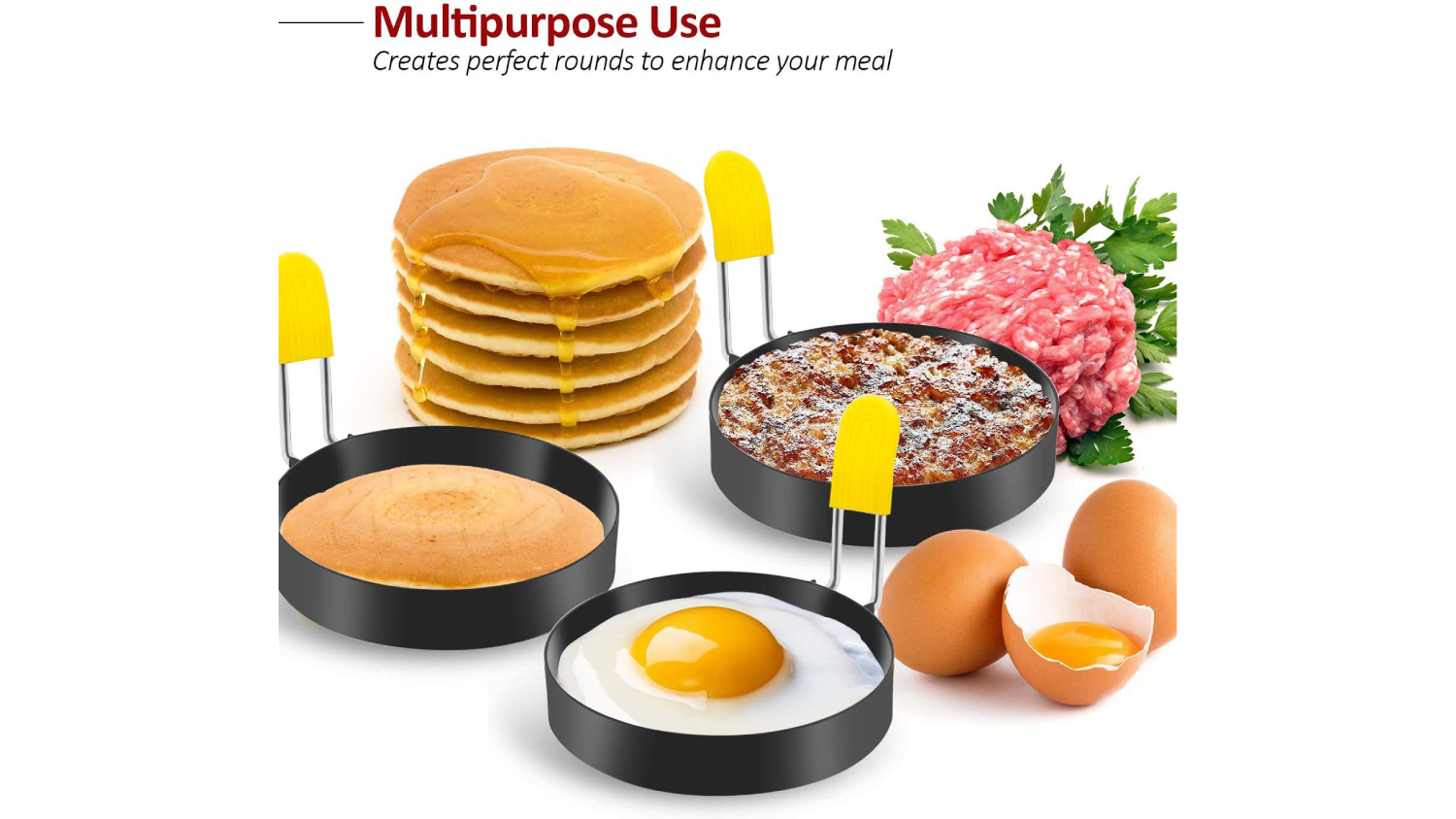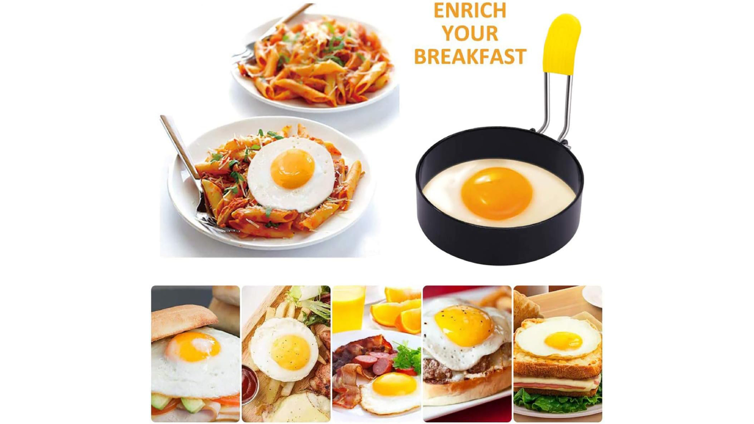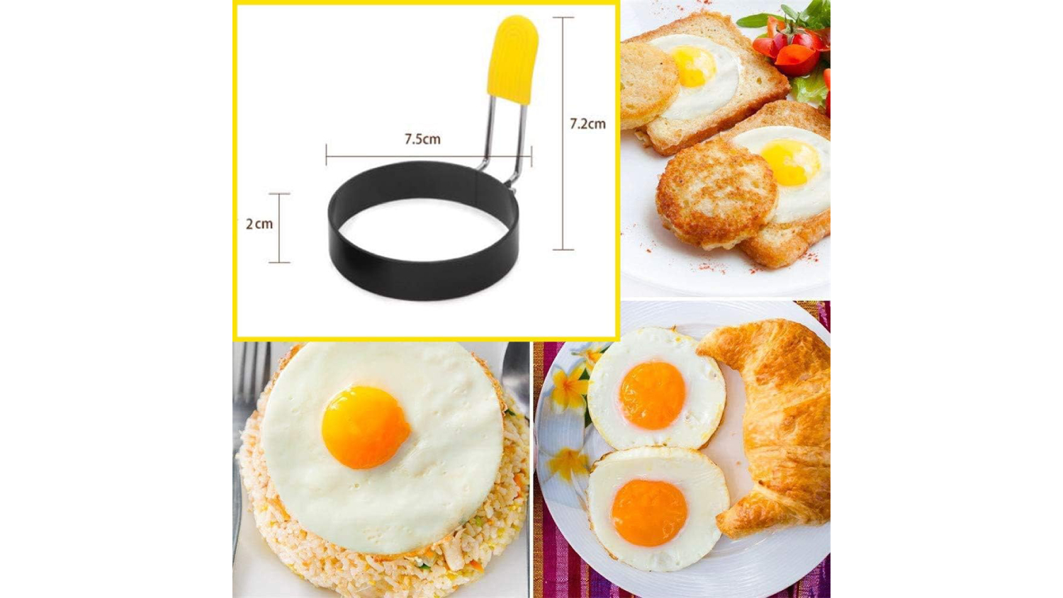 Start your day with perfect eggs using the Kmall Silicone Egg Frying Mould. Made from FDA-certified, food-grade silicone with a non-stick coating, these rings ensure easy cooking and cleanup. It features a stainless-steel handle with protective silicone covers to prevent scalding. Aside from eggs, you can use them for perfect pancakes, biscuits, or muffins.