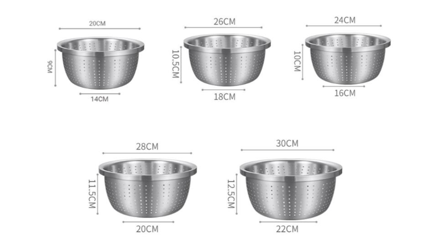 Level up your food preparation experience with the SOGA Stainless Steel Colander Set 2pcs. (20, 24, 26, 28, and 30cm)! This bundle boasts 2 x 5-piece different-sized colanders, all crafted from ultra-durable, 18/10 stainless steel for superior strength and rust resistance. Its wide rim and flat base provide a sturdy grip, while the dishwasher-safe design makes cleanup a breeze. BPA-free and perfect for any kitchen, this SOGA set lets you rinse, drain, and wash confidently.