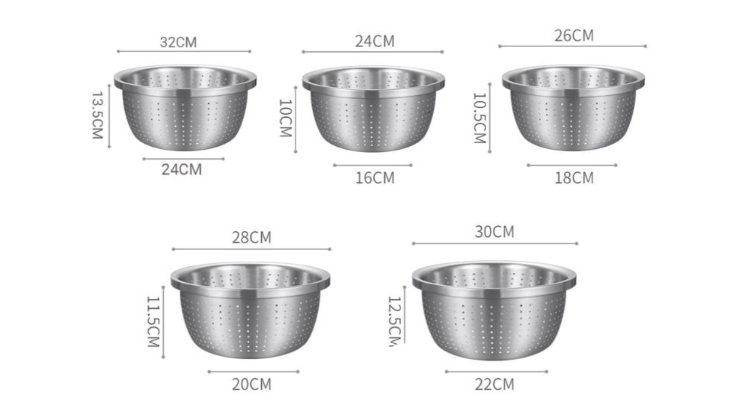 Level up your food preparation experience with the SOGA Stainless Steel Colander Set 2pcs (24, 26, 28, 30, and 32cm)! This set boasts 2 x 5-Pieces different sized colanders, all crafted from ultra-durable, 18/10 stainless steel for superior strength and rust resistance. Dishwasher-safe and BPA-free, it is the perfect addition to any kitchen.