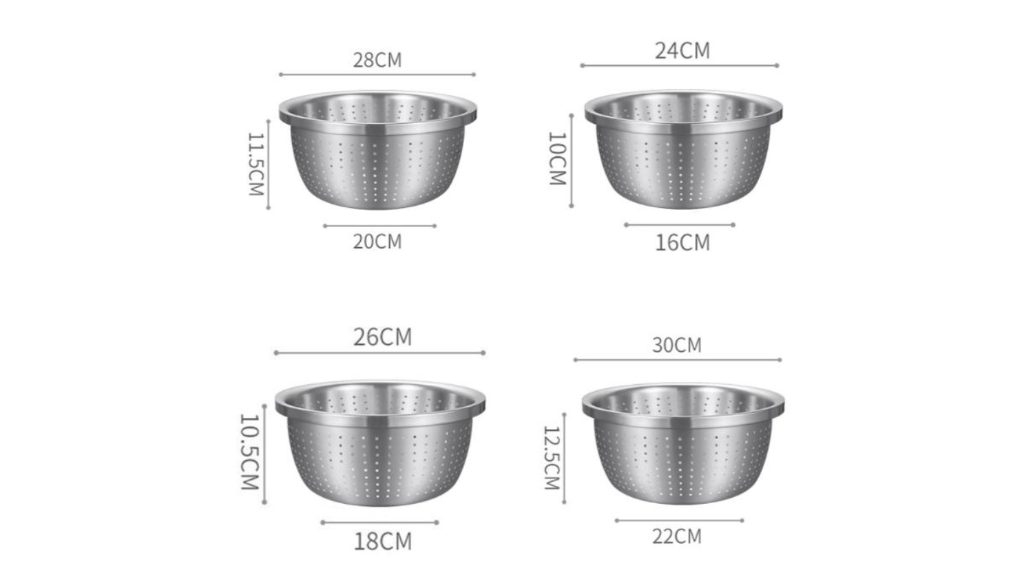 SOGA Stainless Steel Collander Set 2pcs. - 24, 26, 28, 30cm