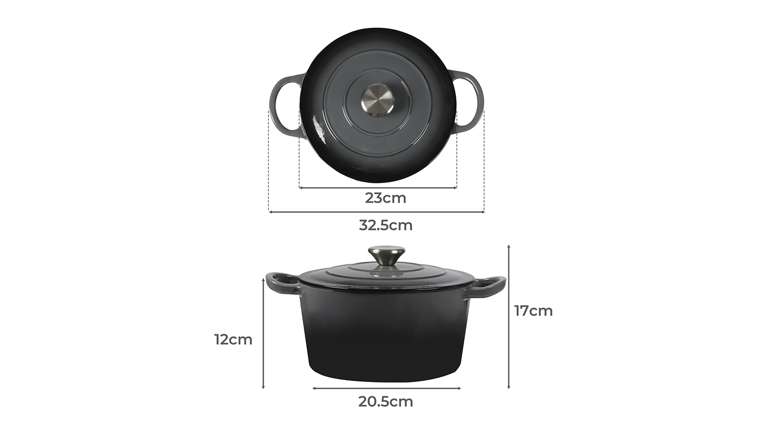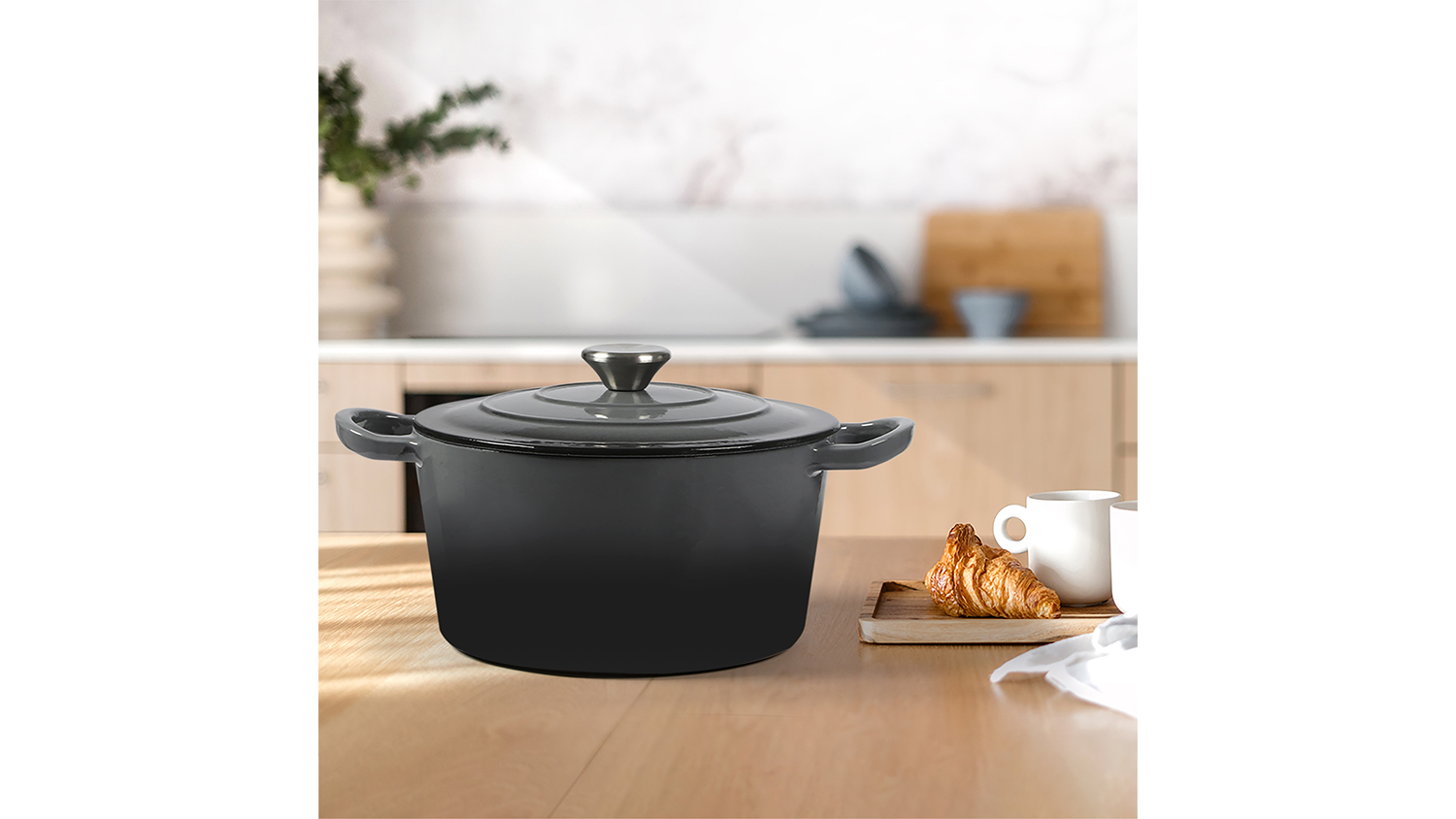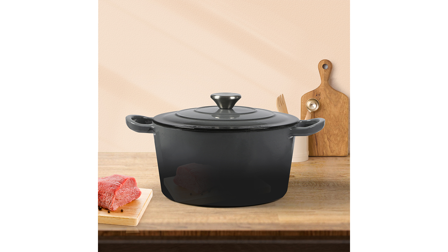 Toque Cast-Iron Round Dutch Oven with Lid 4L - Black