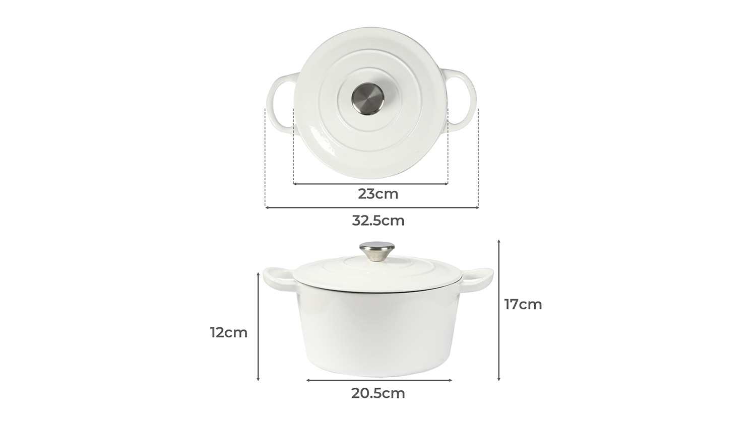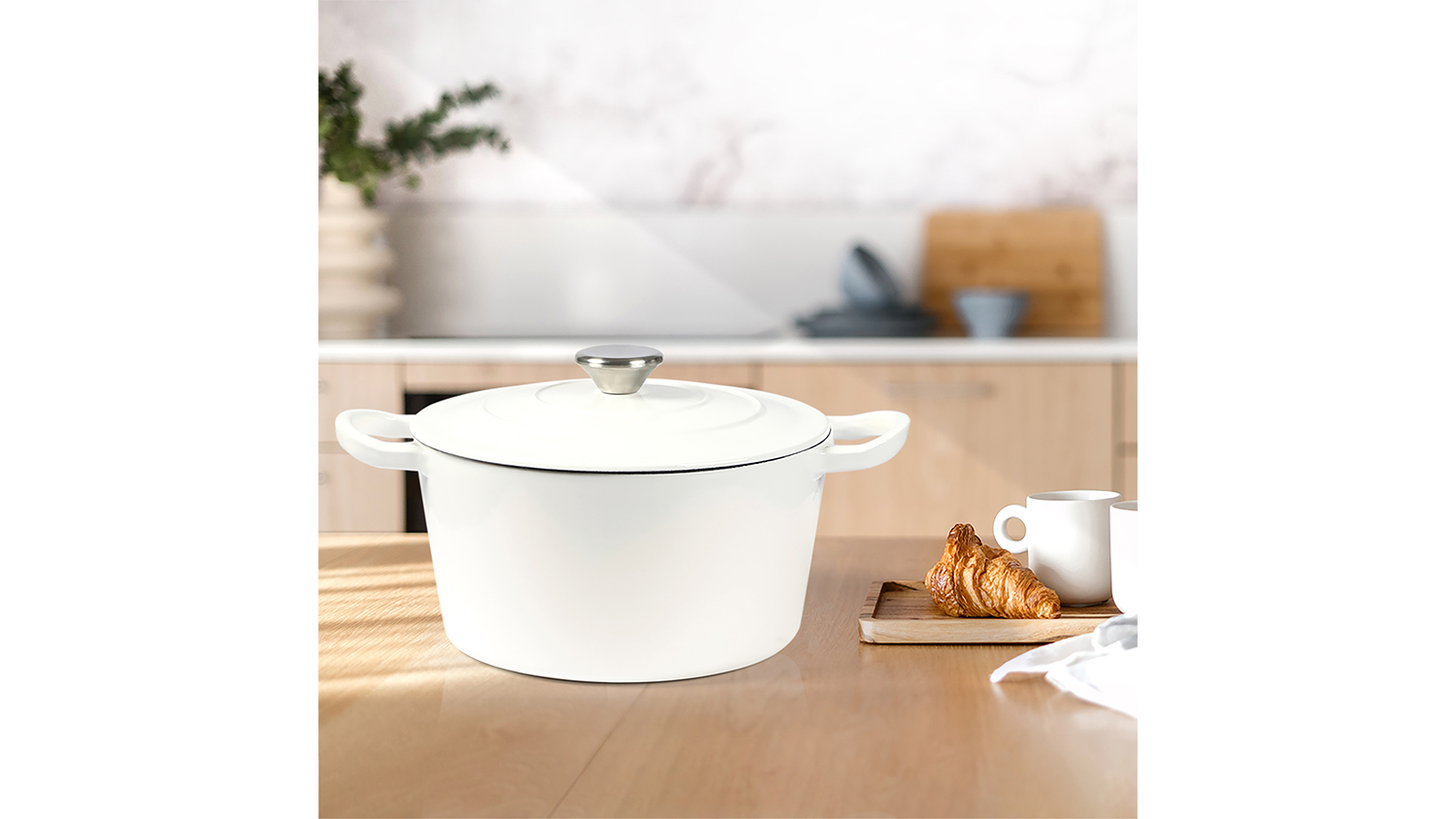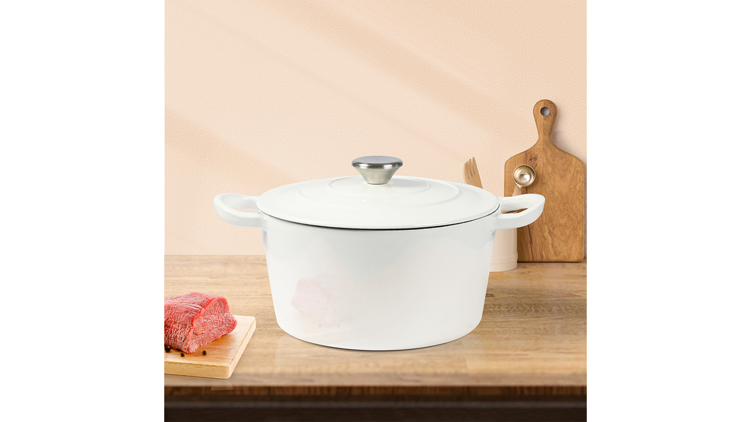 Toque Cast-Iron Round Dutch Oven with Lid 4L - White