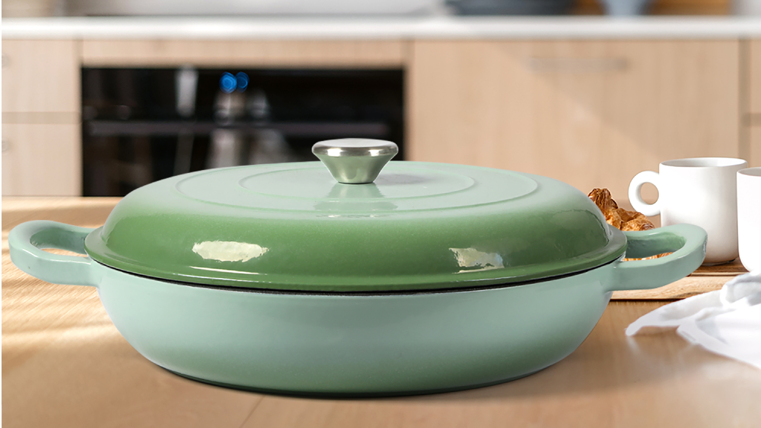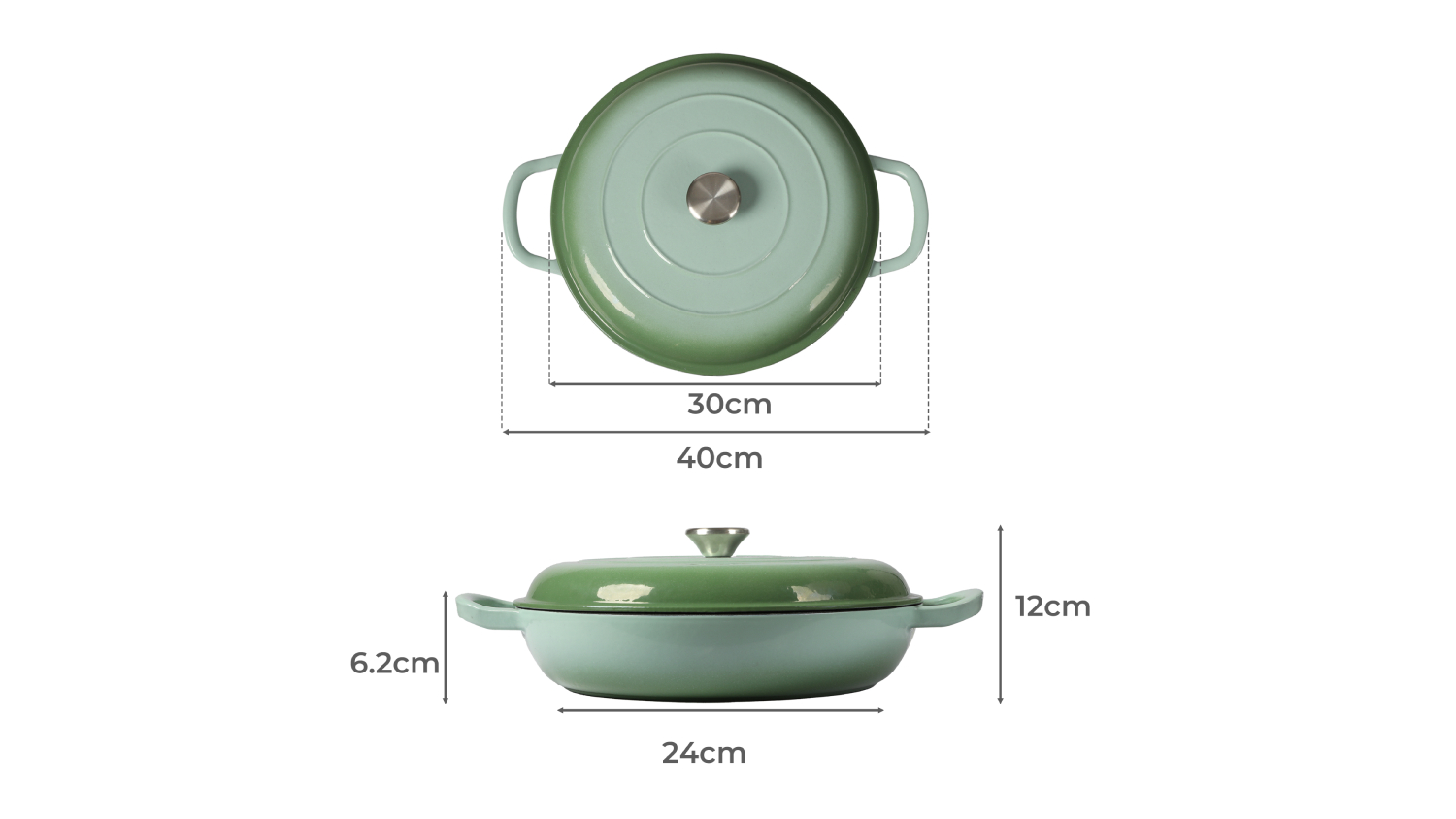 Toque Cast-Iron Round French Pan with Lid 3.5L - Green