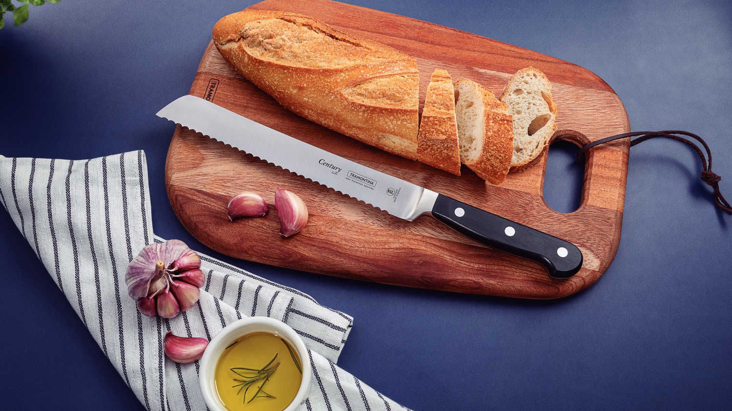 Enjoy perfect slices every time with the Tramontina Century Forged Bread Knife! Featuring a special heat-treated stainless steel blade, this knife delivers precision cutting of delicate food items. While the ergonomic, fibreglass-reinforced handle ensures comfort and safety, making cutting effortless.