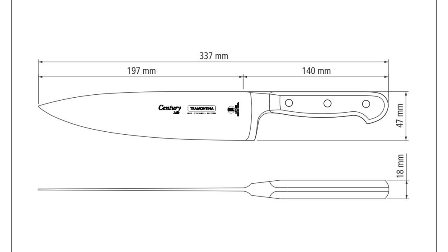 Effortlessly tackle your kitchen tasks with the Tramontina Century Forged Chef's Knife 20cm. Featuring a stainless-steel blade and a sword-shaped tip, this tool makes piercing and cutting easier than ever. The fibreglass-reinforced polycarbonate handle ensures lasting comfort. Now you can chop, slice, and dice like a professional chef!