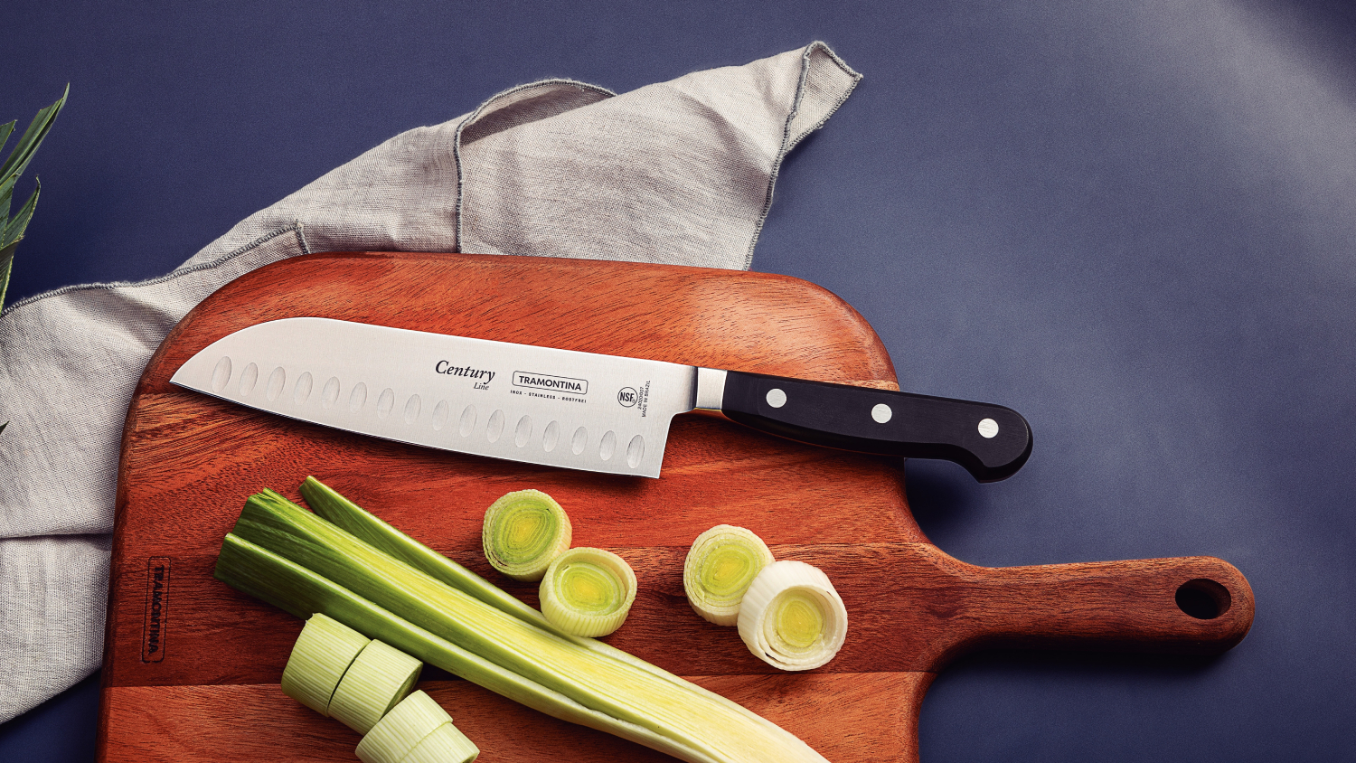 Experience durability and precision with the Tramontina Century Forged Santoku Knife. This expertly crafted knife features a durable stainless steel blade, expertly heat-treated for exceptional sharpness. The ergonomic handle ensures comfortable and safe use. Made in Brazil and dishwasher-safe, this knife simplifies your food prep routine while delivering professional-level performance.