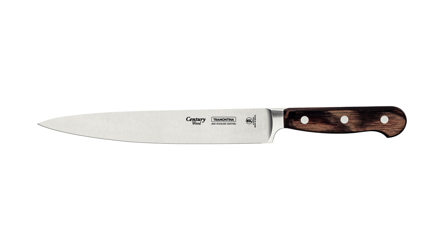 Slice, carve, and chop with precision using the Tramontina Century Wood Utility and Carving Knife. This elegant knife combines exceptional performance with timeless beauty. Its high-quality stainless steel blade provides superior cutting power, while the comfortable wooden handle ensures a secure and comfortable grip. Dishwasher-safe for easy cleaning, this knife is a must-have for any home cook or professional chef.