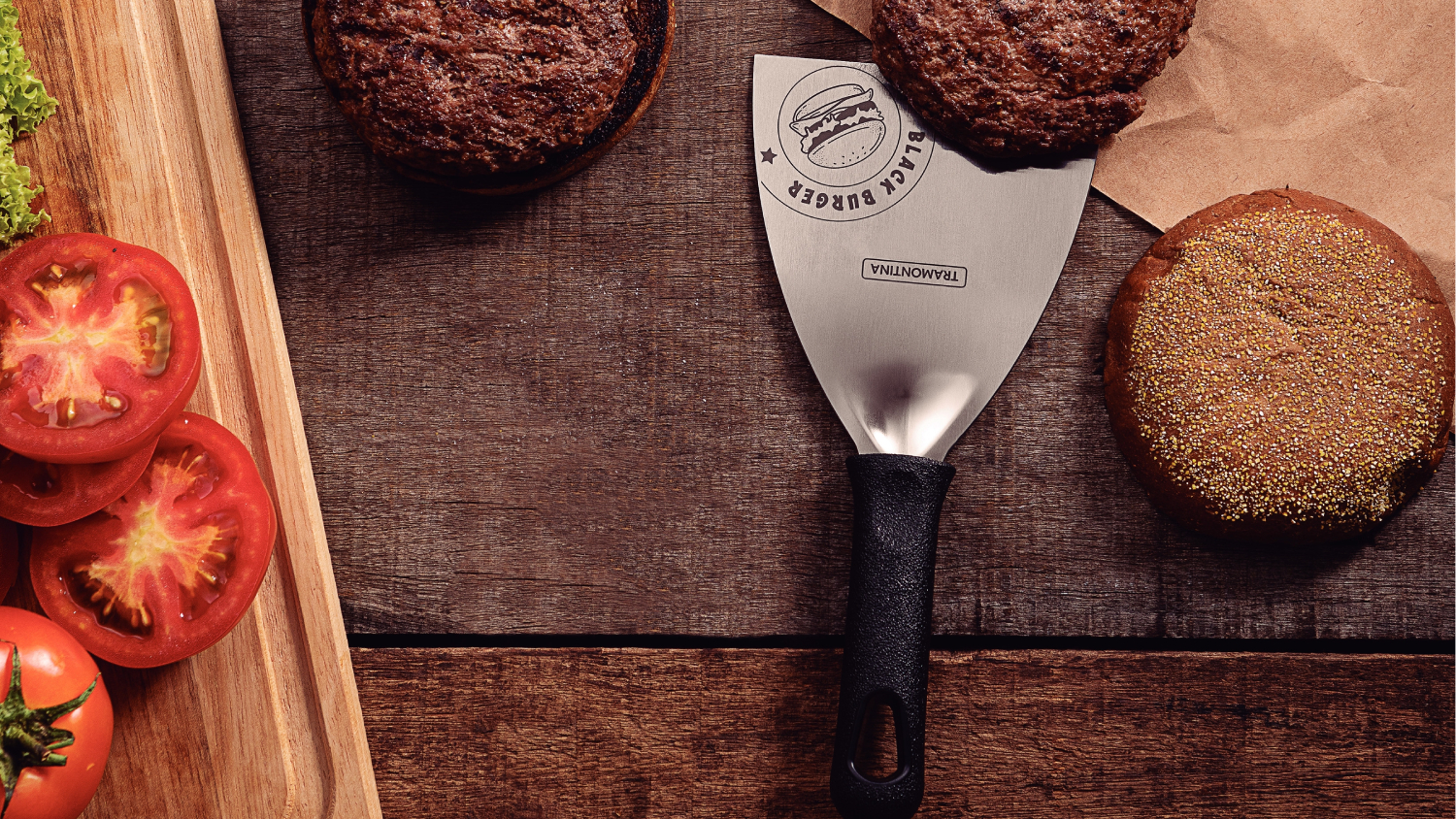Master the grill with the Tramontina Churrasco Black Collection Barbeque Spatula 11cm! This tool is expertly crafted for effortless flipping and turning of burgers, BBQs, and more. Its stainless-steel blade resists warping under heat, while the ergonomic polypropylene handle ensures a firm and safe grip. Whether on the grill or griddle, it’s your ultimate tool for delicious results.