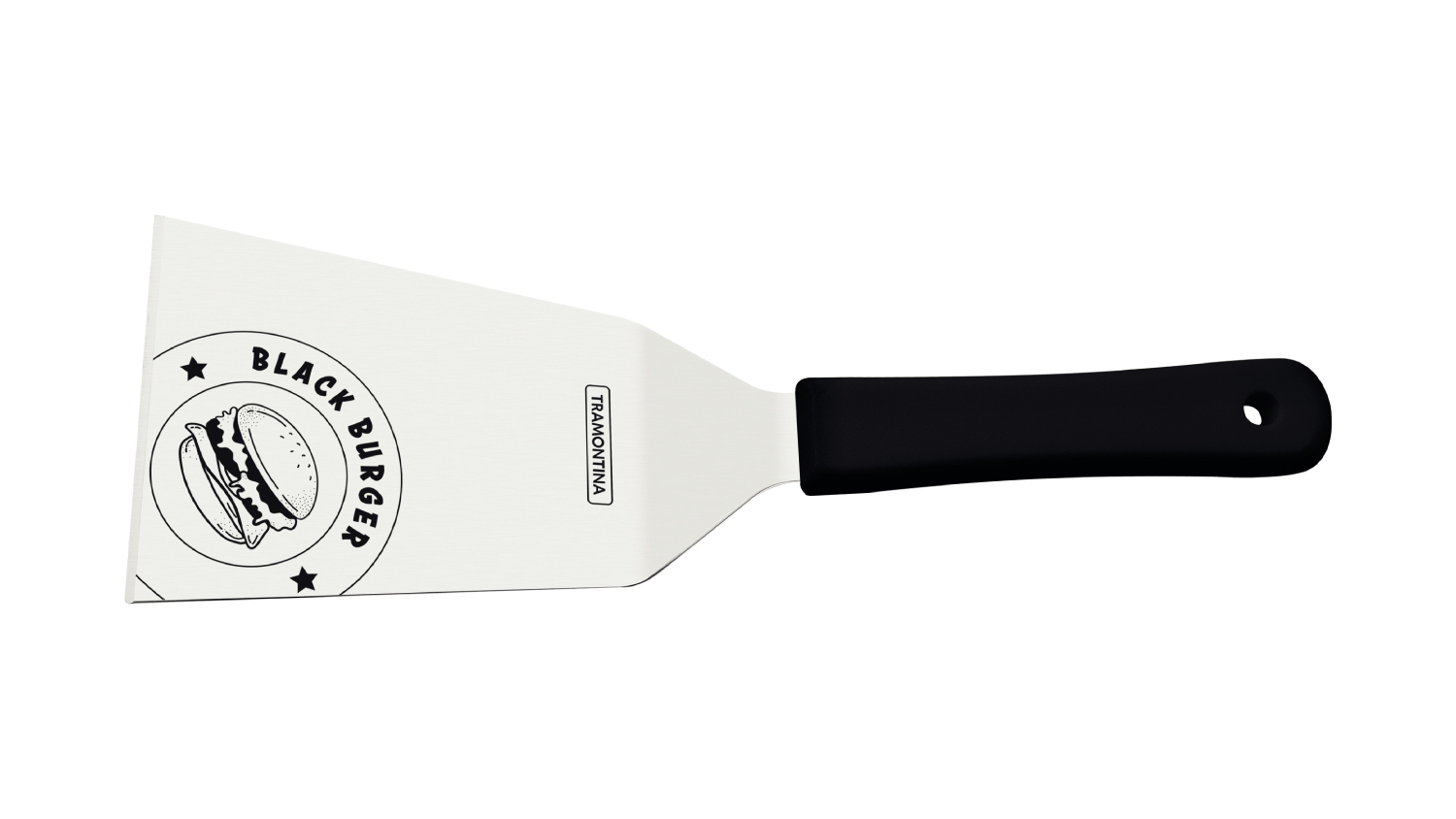 Master the grill with the Tramontina Churrasco Black Collection Barbeque Spatula 15cm! This tool is expertly crafted for effortless flipping and turning of burgers, BBQs, and more. Its stainless-steel blade resists warping under heat, while the ergonomic polypropylene handle ensures a firm and safe grip. Whether on the grill or griddle, it’s your ultimate tool for delicious results.