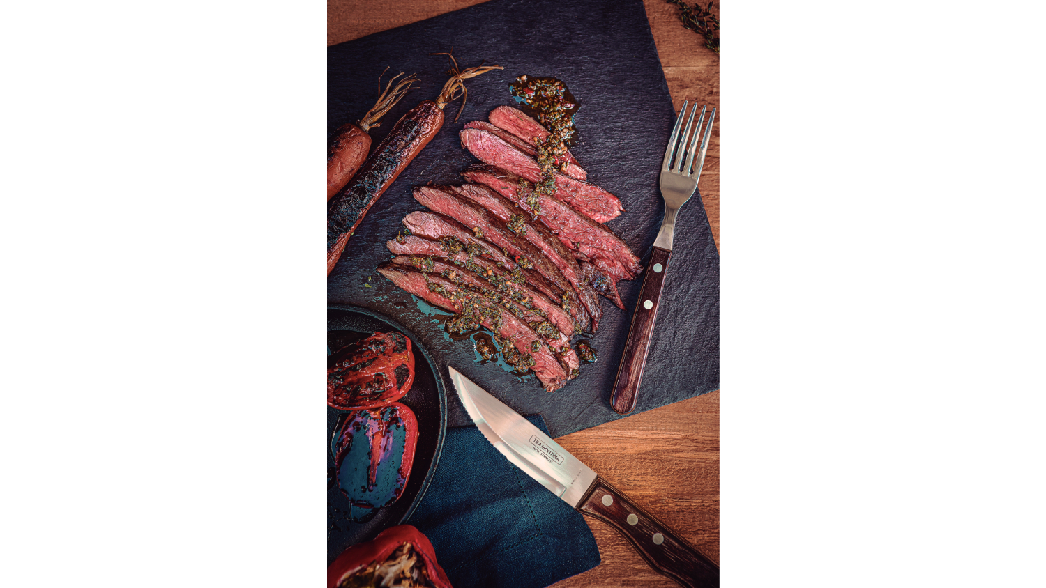 Serve and savour your meals like a pro with the Tramontina Churrasco Jumbo Point Steak Cutlery Set. This collection features forks and knives that will effortlessly elevate your dining experience. Crafted for durability and performance, the stainless steel blades stay sharp longer thanks to heat treatment, while the elegant Polywood-treated handles stand up to high temperatures. For added convenience, the cutlery set is also dishwasher-safe.
