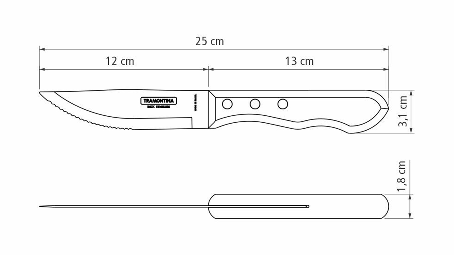 Upgrade your barbecue experience with the Tramontina Churrasco Spanish Steak Knife 11cm 4pcs. This set features durable stainless steel blades, stylish Polywood-treated handles, and secure aluminium rivets for a precise and elegant cut. Perfect for those who appreciate quality at the table.