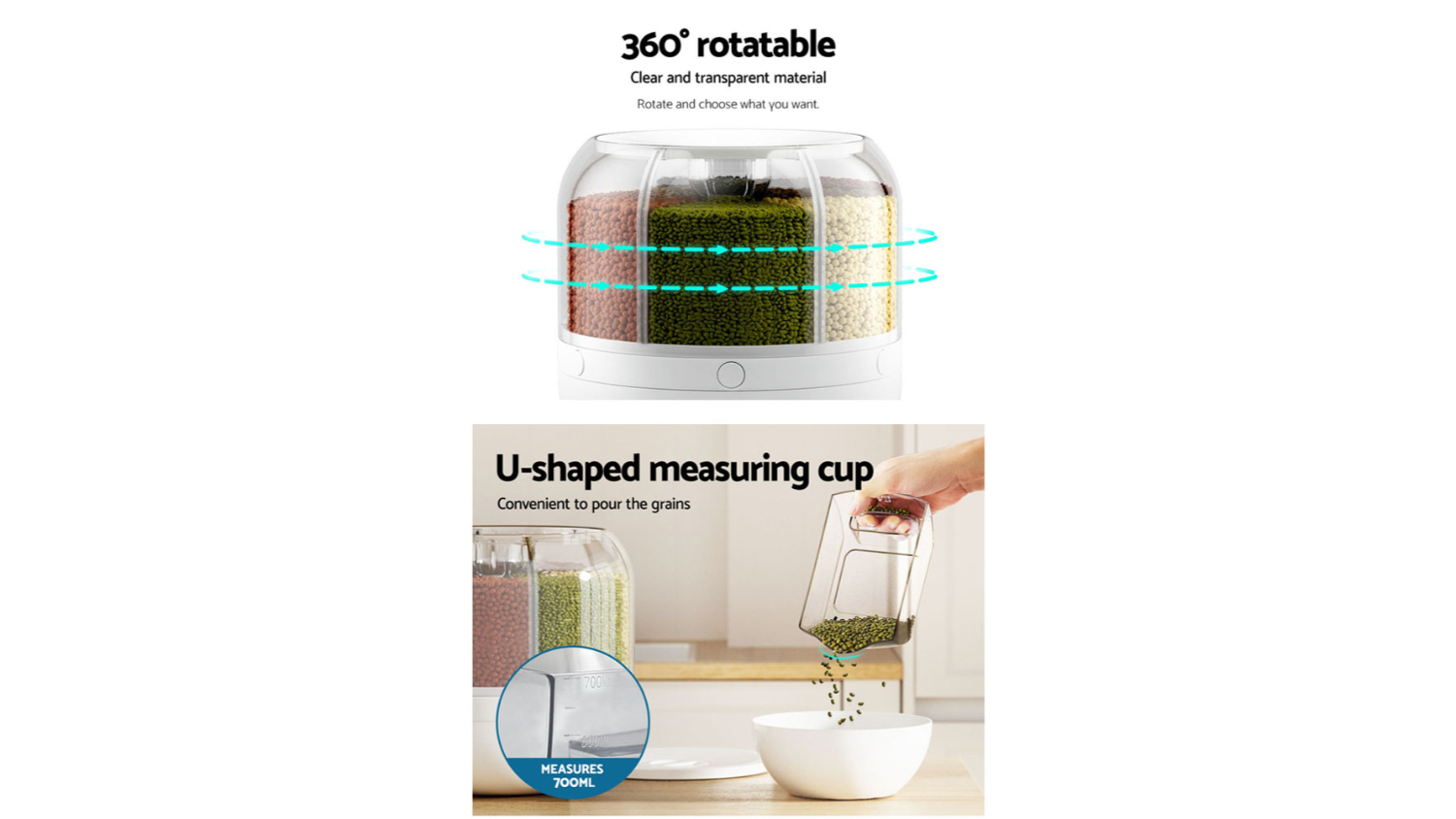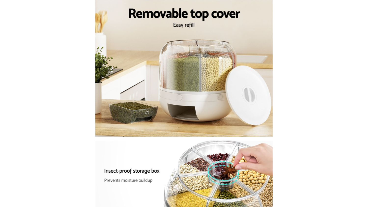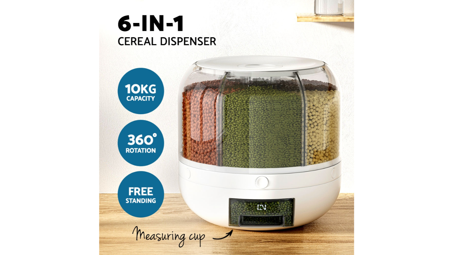 Experience a new level of organisation and efficiency in your kitchen with the Devanti 6-in-1 Dispensing Container. This ingenious container is a game-changer when it comes to storing and dispensing dry goods. The six compartments are designed to hold a variety of items, from corn and riceto other food items. Say goodbye to cluttered cabinets and welcome a streamlined, functional kitchen with the Devanti 6-in-1 Dispensing Container.