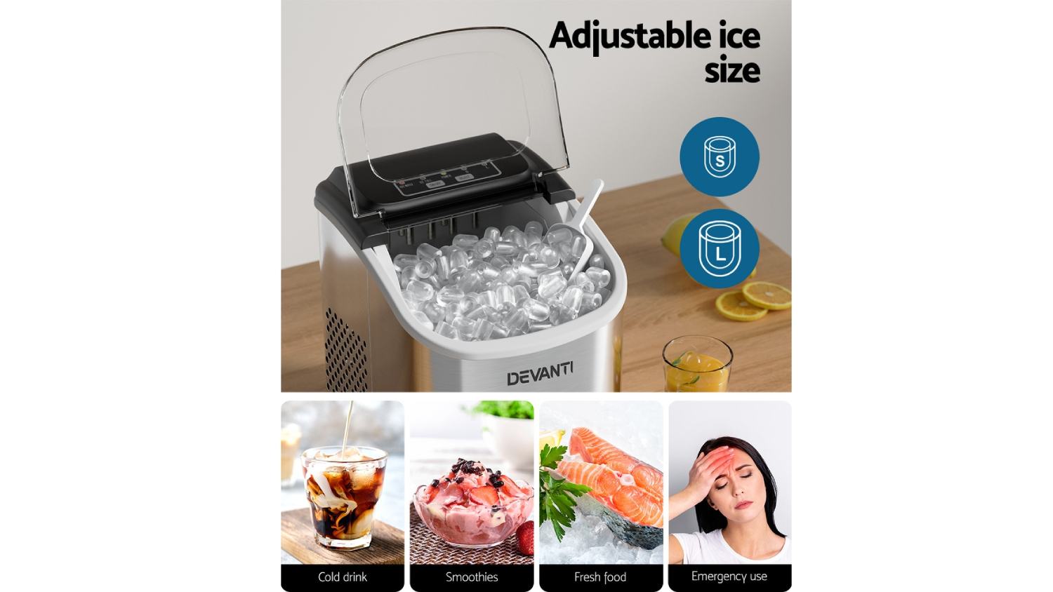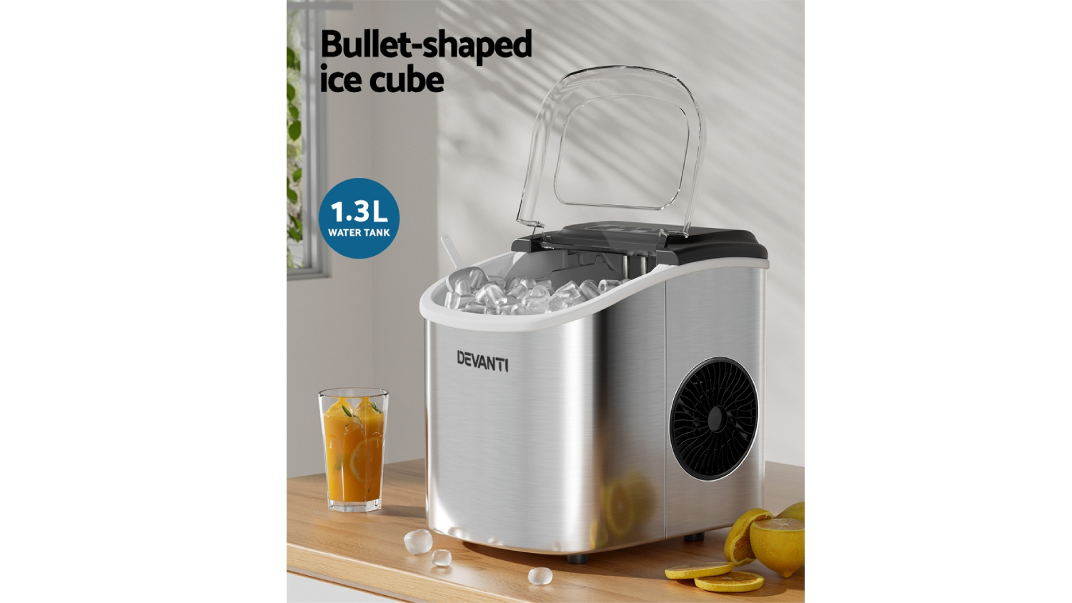 Devanti Benchtop Ice Maker 1.3L - Stainless Steel