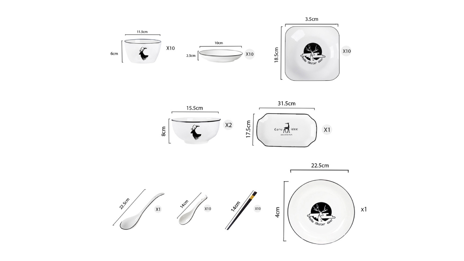 Level up your dining experience with the SOGA Japanese-Inspired Squared Dinnerware Set for Ten 55pcs.! Crafted from top-notch, lead-free, and chip-resistant ceramic, this set is built to last. The dinnerware also features a captivating antler pattern and darkened rims for a cohesive tabletop setup. Plus, it's both dishwasher and microwave-safe for effortless cleaning.