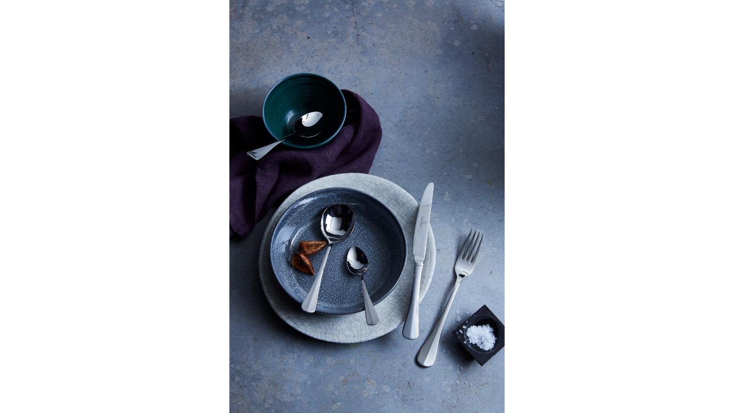 Add a touch of sophistication to your dining table with the Stanley Rogers Baguette Cutlery Set. This 56-piece collection is crafted from high-quality stainless steel. Perfect for entertaining, this cutlery set serves eight guests with all the essentials—dinner knives, forks, entrée knives, entrée forks, dessert spoons, soup spoons, and teaspoons. The elegant upturned handles with central fluting also provide a comfortable grip and a timeless aesthetic.