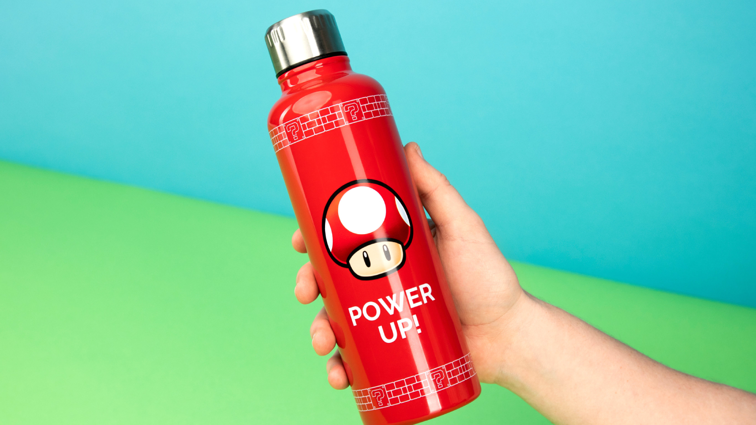 Level up your hydration with the Paladone Metal Water Bottle 500ml. Built with double-walled stainless steel, this bottle keeps your drinks perfectly hot or cold for longer. The secure screw-top lid is also leak-proof and locks in freshness. Finished with a vibrant Power Mushroom design, this officially licensed collectible is the perfect gift for Super Mario fans.