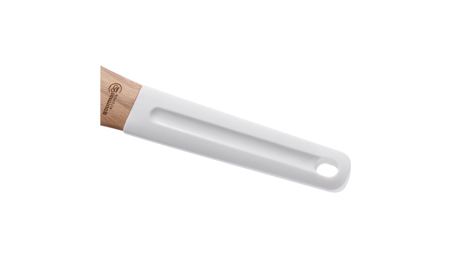 Upgrade your cooking arsenal with the Gourmet Kitchen Wooden Corner Spoon with Silicone Handle! Crafted from premium beechwood, these corner and slotted spoons are designed to reach every nook and cranny of your cookware, making stirring, scraping, and draining a breeze. The silicone grip ensures a comfortable and secure hold, while the sleek white colour adds a touch of sophistication to your kitchen essentials.