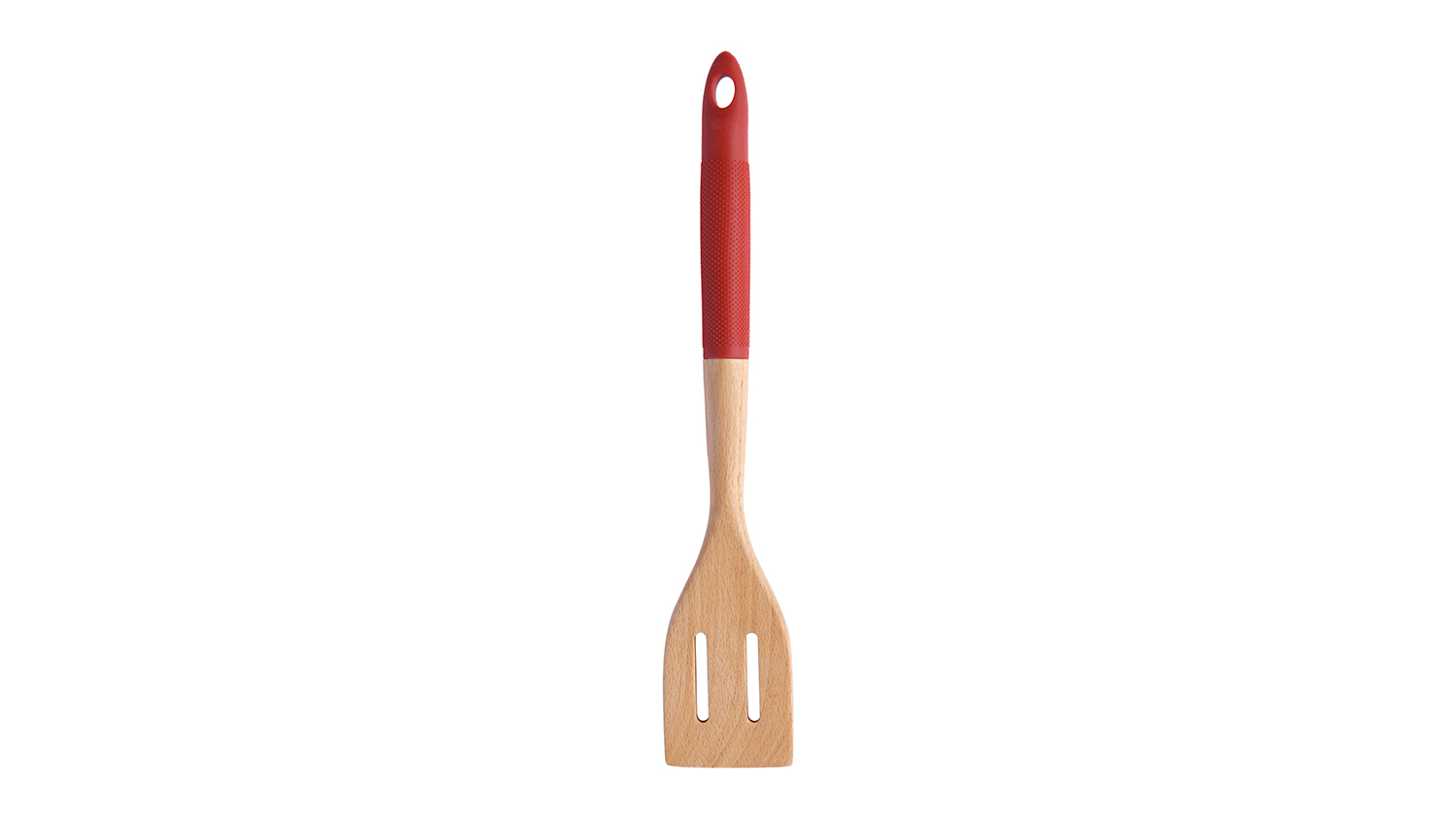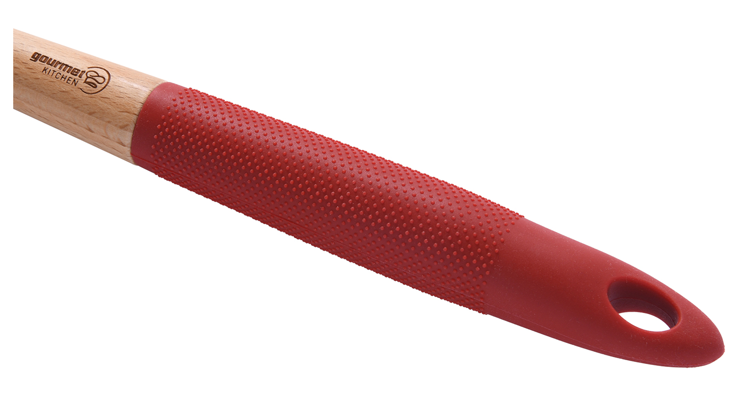Gourmet Kitchen Wooden Spatula with Rubberised Handle - Red