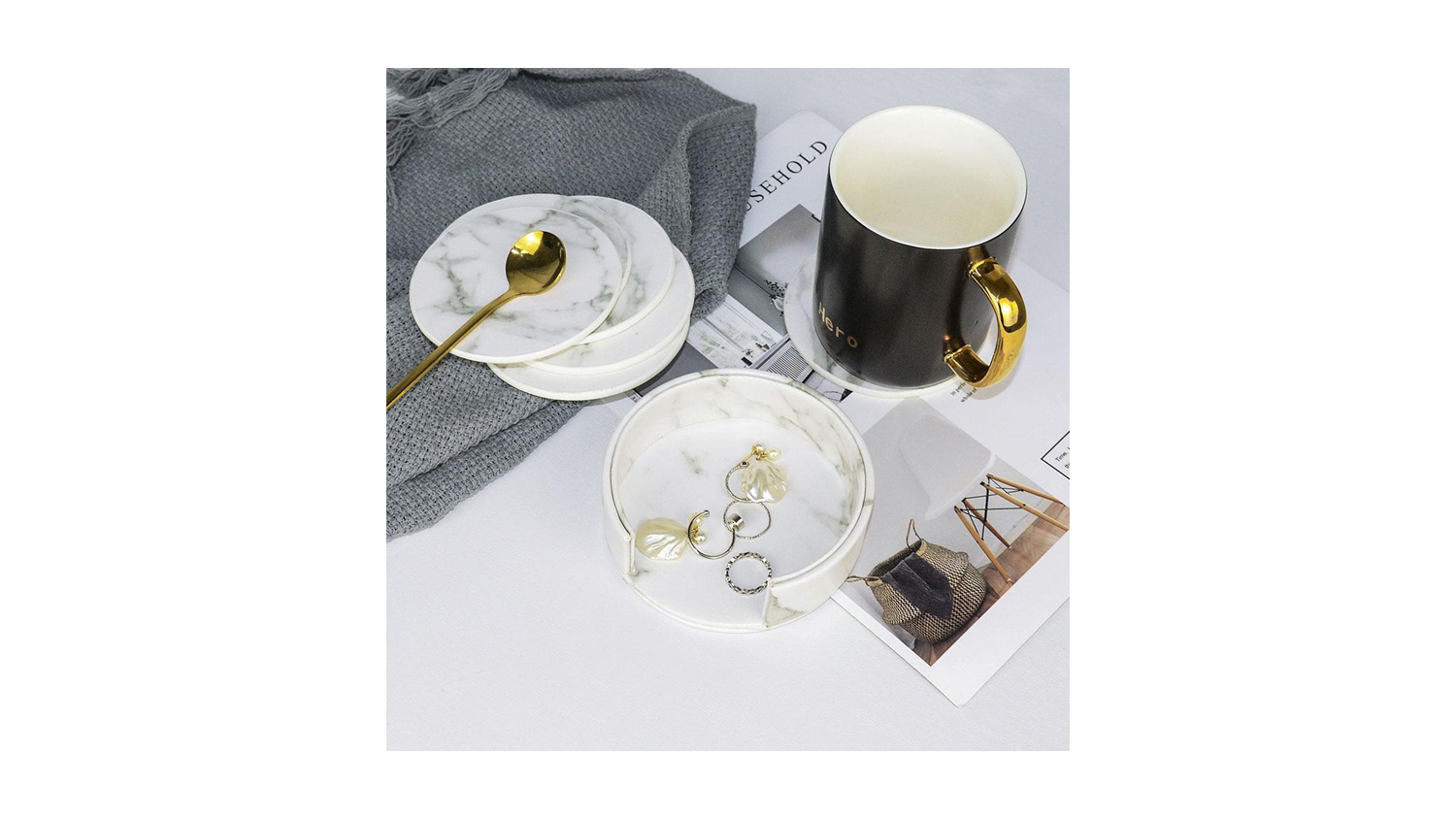 Sleek and elegant, the HOD Round Faux Leather Coasters help protect your tabletops in style! These beautiful coasters are a must-have to prevent condensation rings and help you easily clean your furniture. In addition, it is made from PU leather and features a black marble design that perfectly fits any home interior.