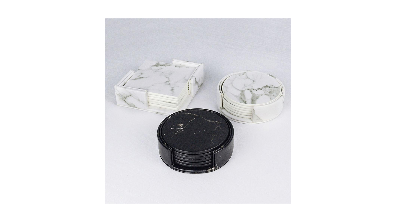 *Hod Round Faux Leather Coasters 6pcs. Black Marble only. Other colours and designs are sold separately.