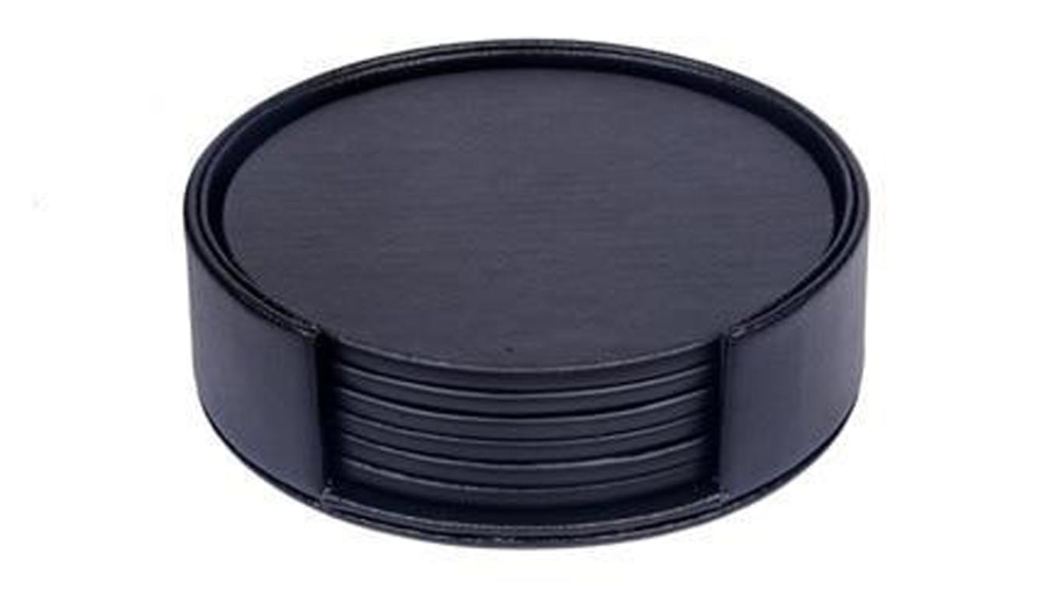 HOD Round Faux Leather Coasters 6pcs. - Solid Black