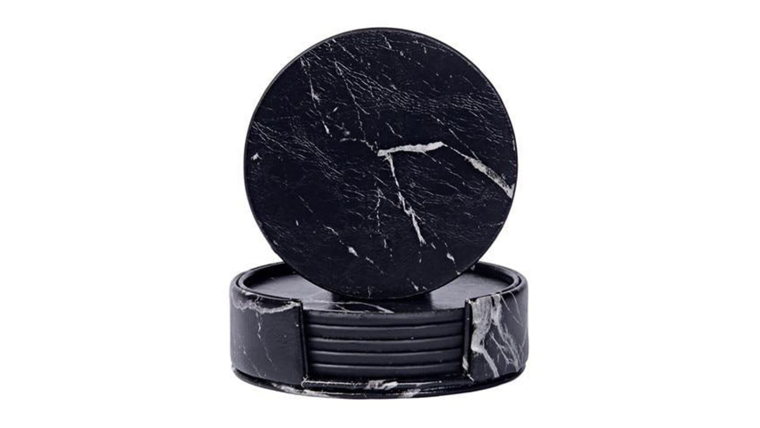 *HOD Square Faux Leather Coasters 6pcs Solid Black only. Other colours and designs are sold separately.