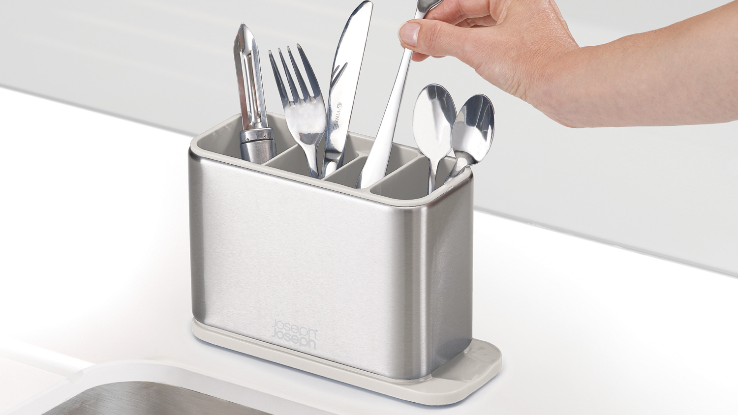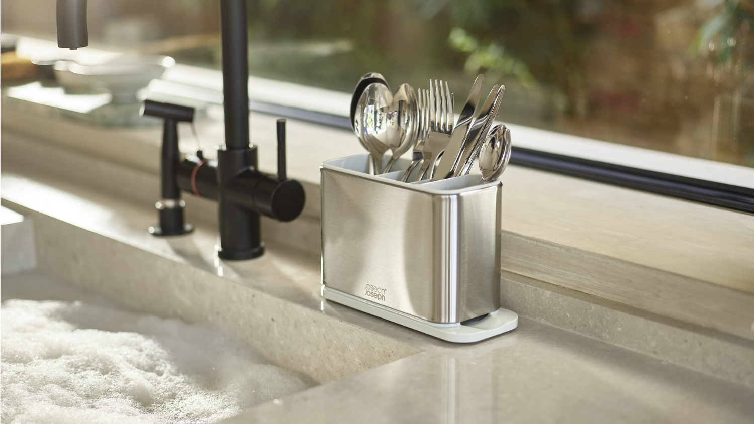Streamline your dishwashing routine with the Joseph Joseph Benchtop Cutlery Drainer Caddy. This sleek, stainless-steel caddy keeps your cutlery organised and your countertop dry with its clever draining system and separate sections for small items. Stylish and practical, it’s the perfect addition to any modern kitchen.