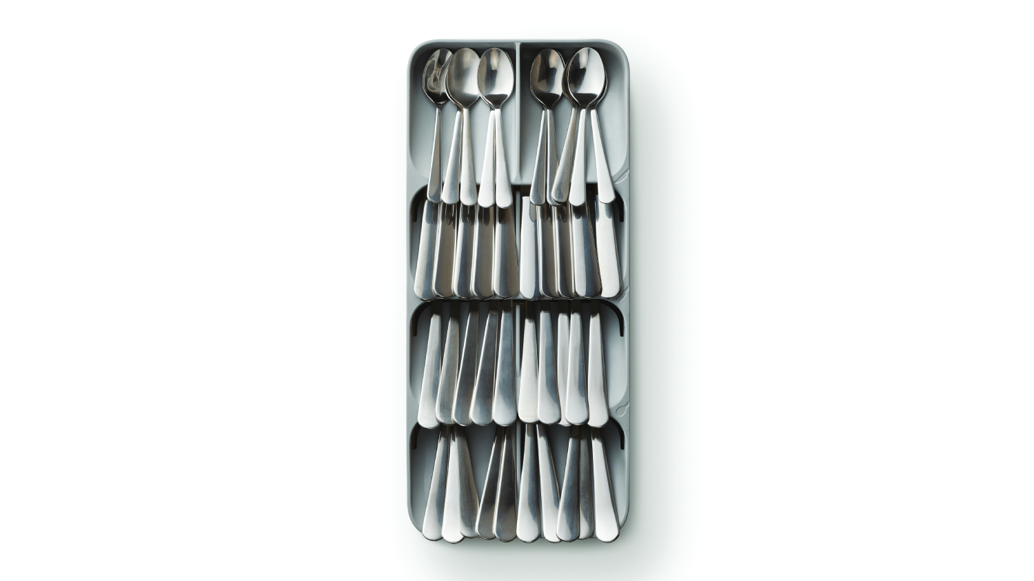 Revolutionise your kitchen drawer with the Joseph Joseph DrawerStore Cutlery Organiser! This clever design features individual, stacked compartments for each piece of cutlery, making organisation a breeze. With easy-to-identify cutlery icons, it ensures your kitchen tools are neatly arranged and accessible.